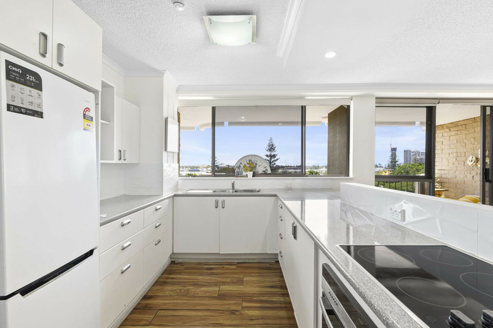 -Large kitchen with plenty of bench space, storage space and a large window to watch the boats go by