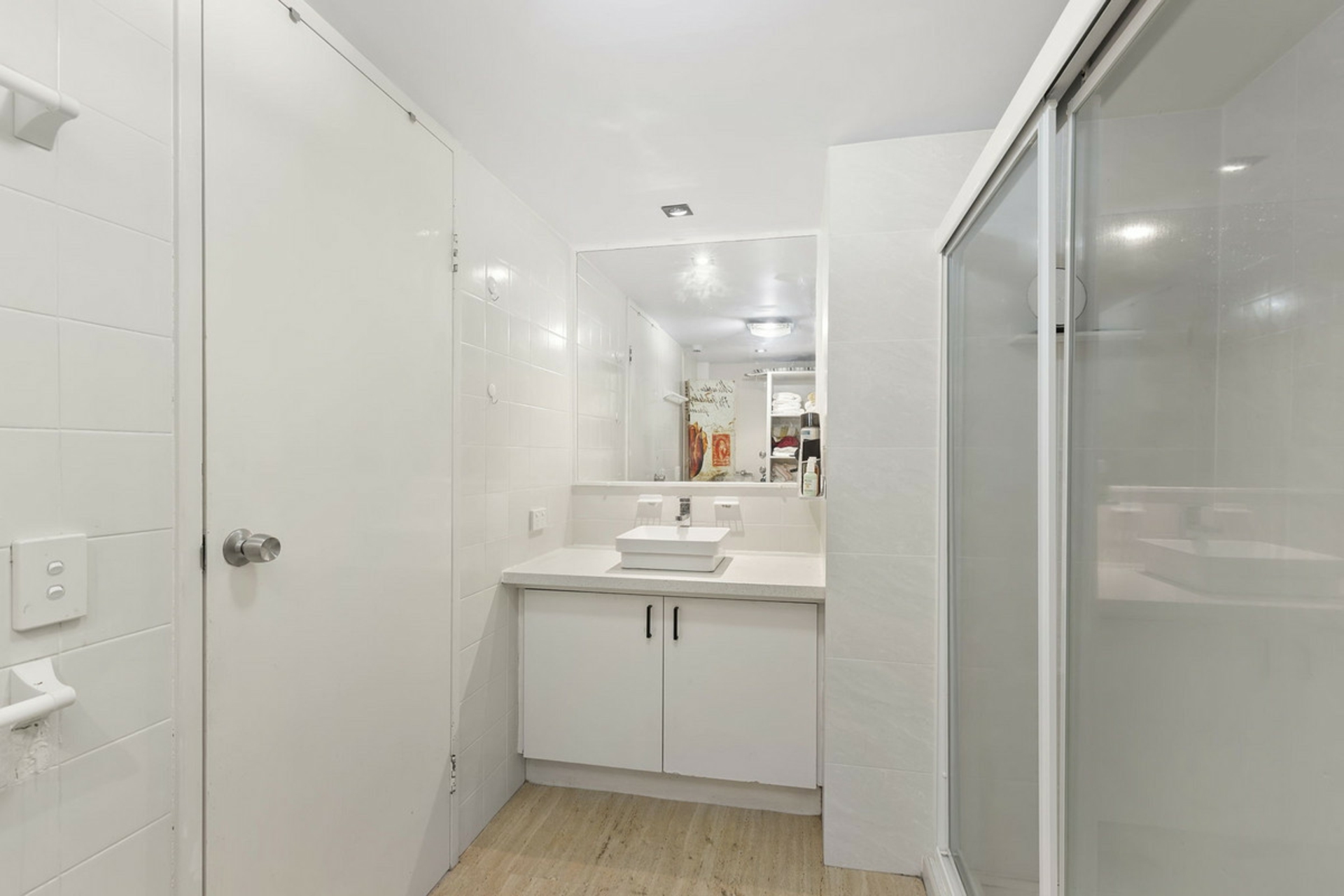 -Spacious bathroom with built in laundry