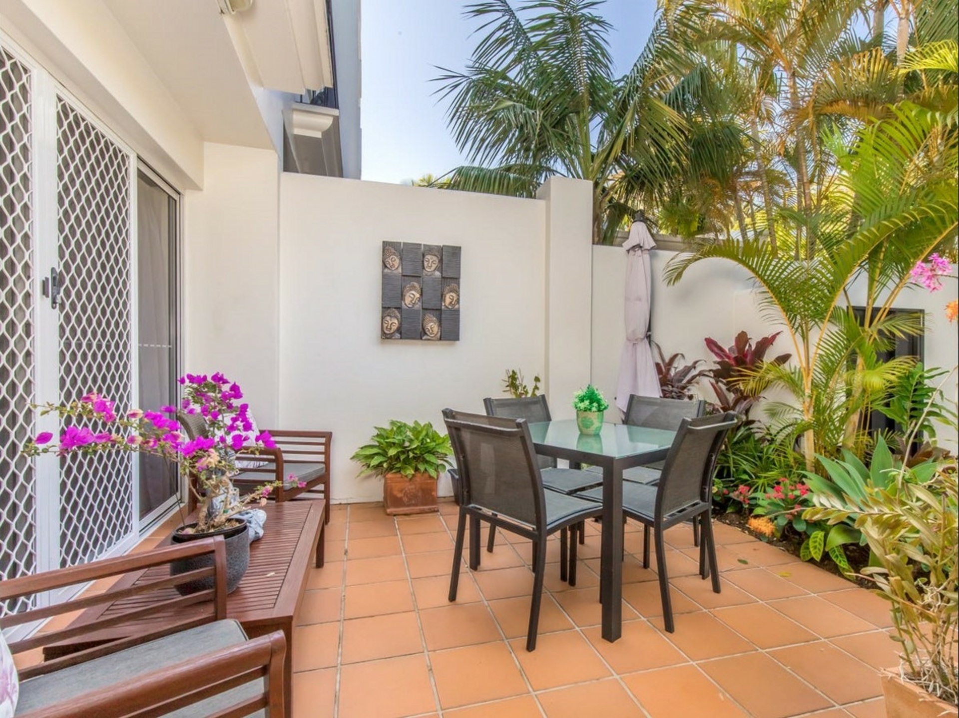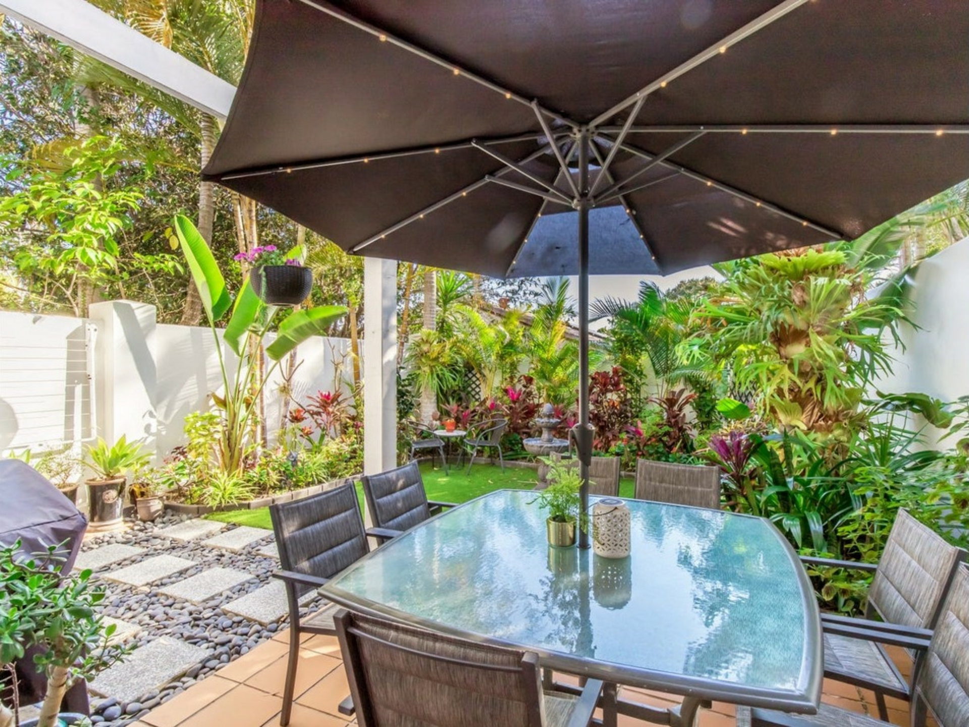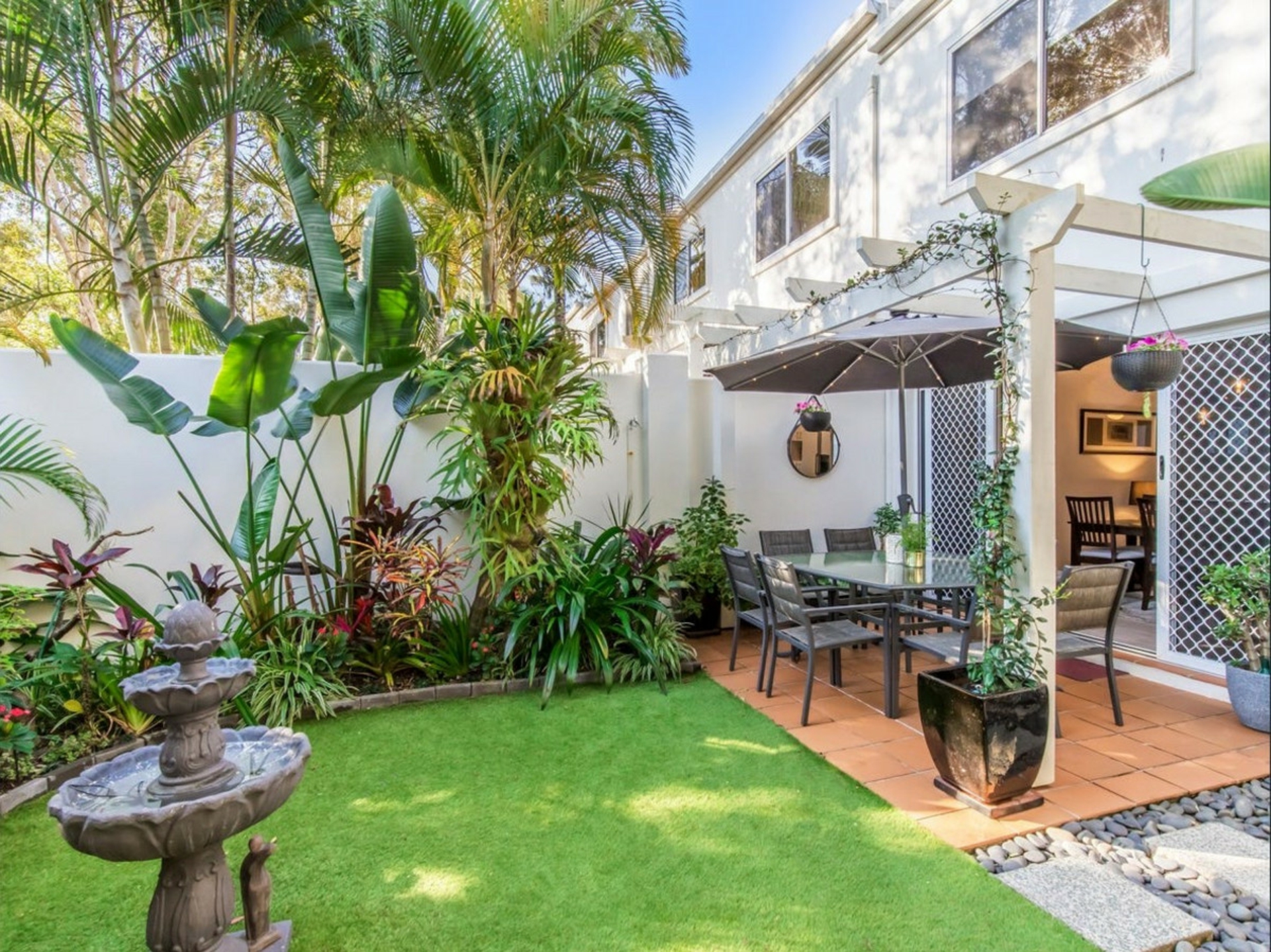 -Leafy and grassed rear courtyard with well maintained gardens offering ample privacy and the ideal oasis for entertaining