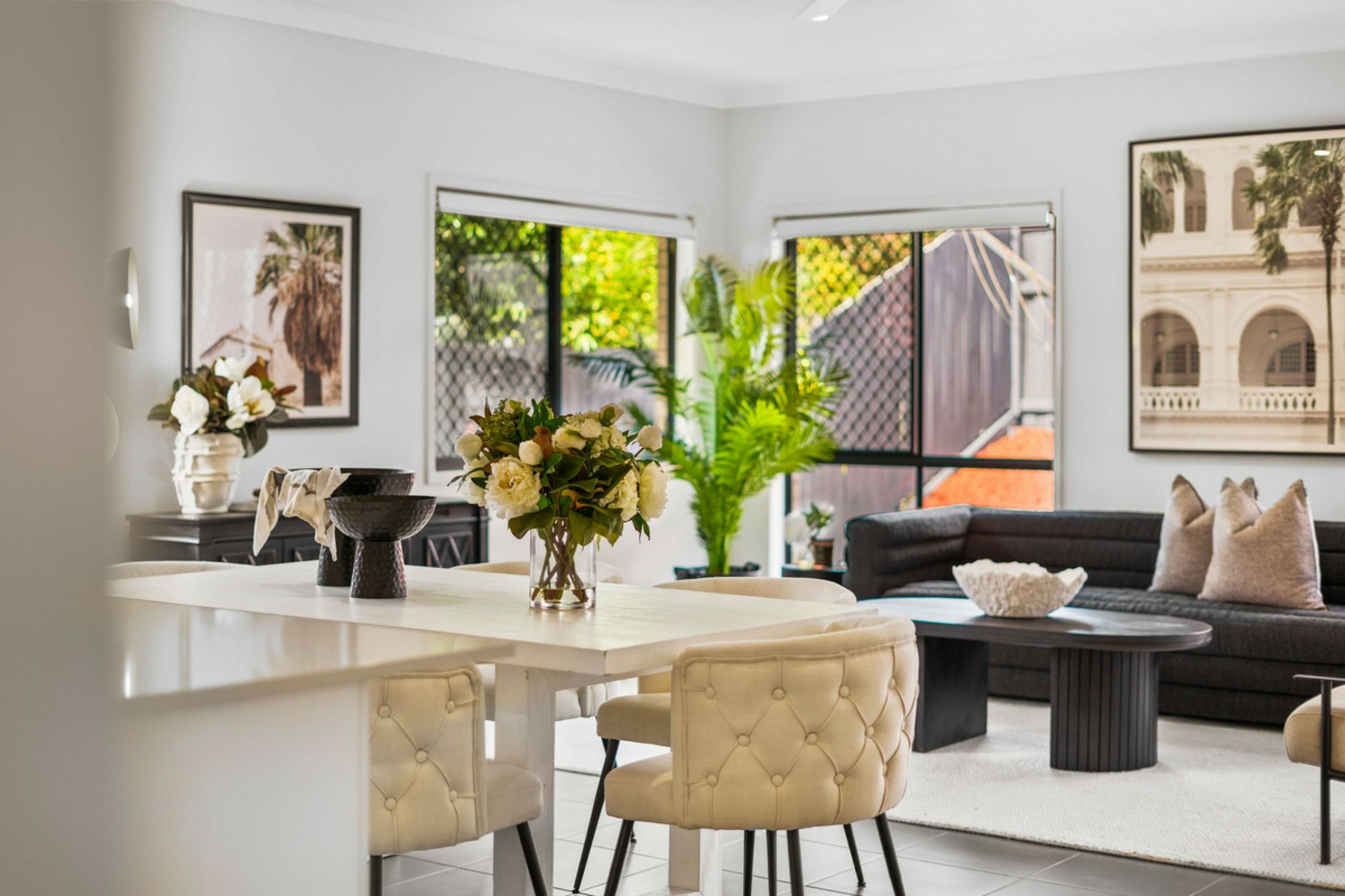 The open-plan living and dining areas are framed by abundant natural light and flow seamlessly to a covered alfresco entertaining zone - an inviting setting for hosting guests or enjoying quiet moments in privacy.