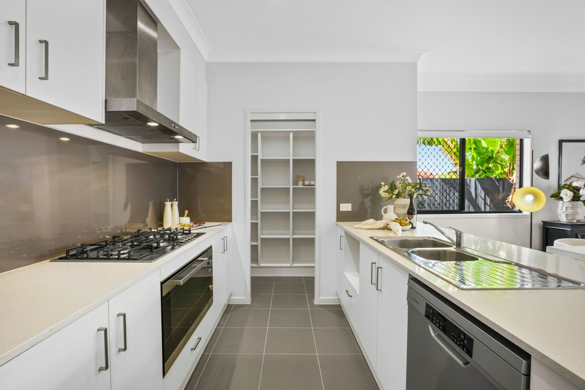 •Contemporary kitchen featuring stone benchtops, quality appliances, walk-in pantry, and ample storage