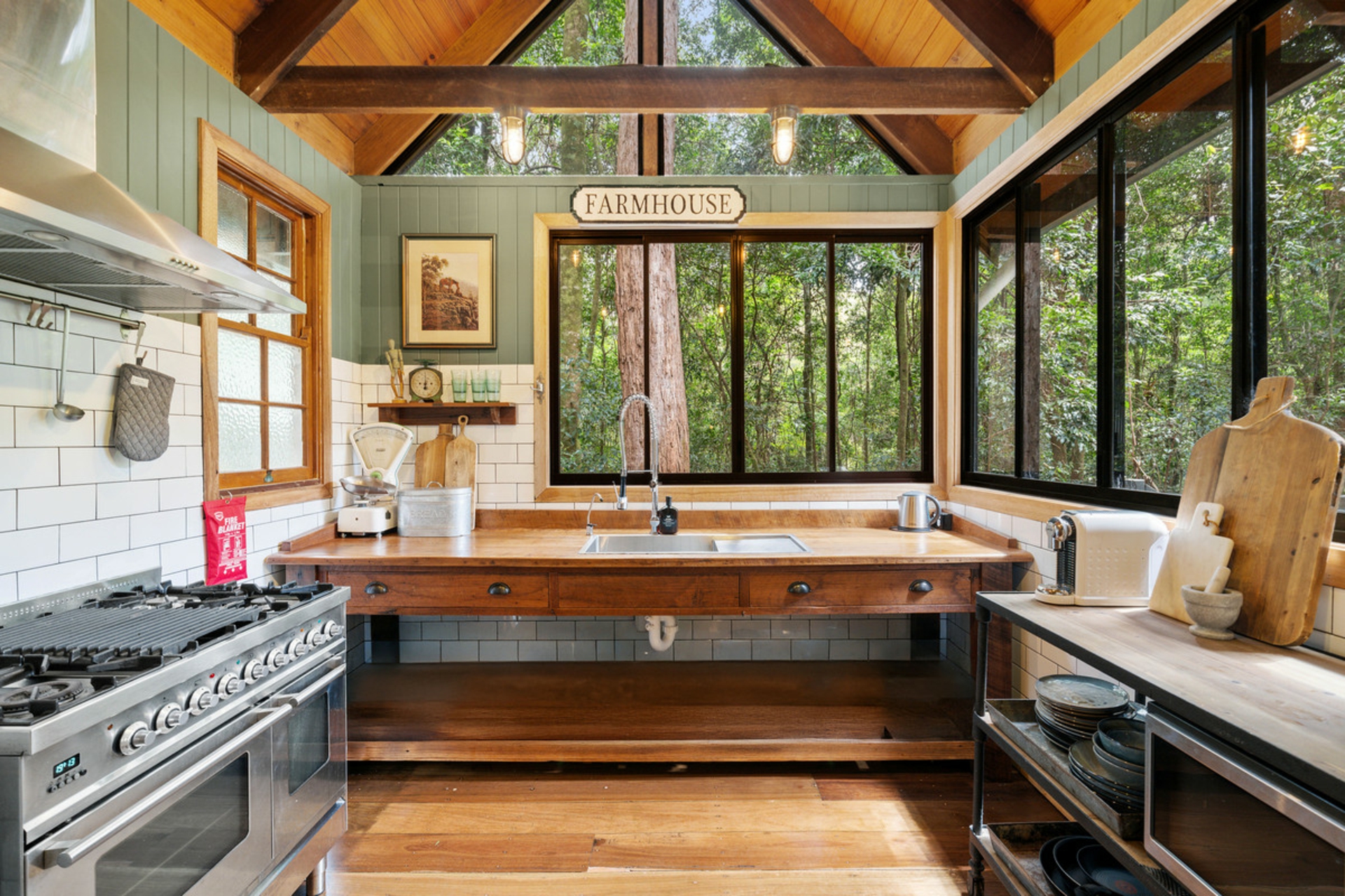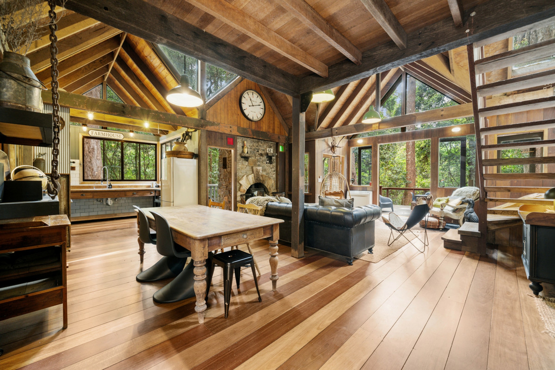 - A farm-style kitchen that flows effortlessly into the dining and lounge areas