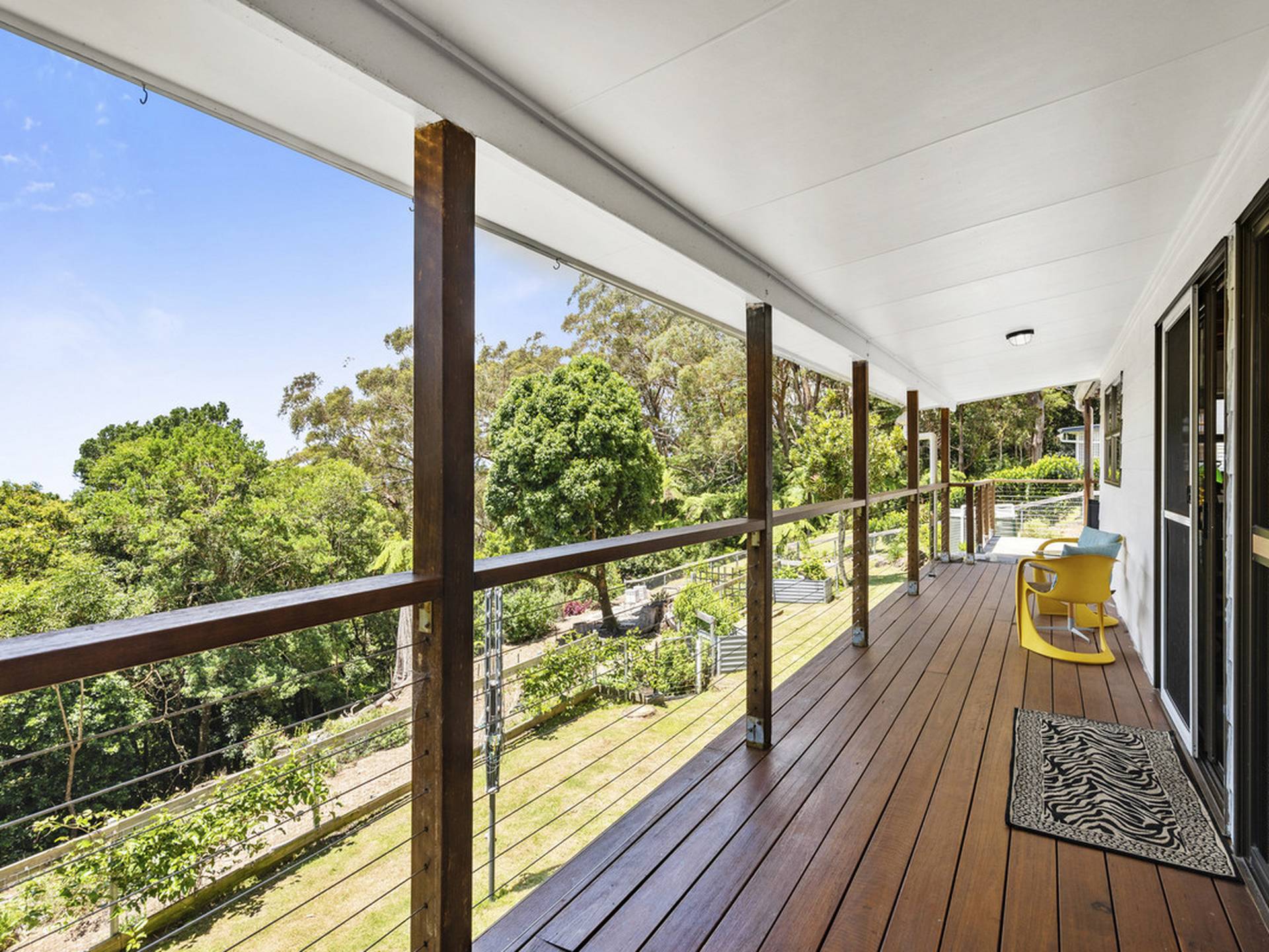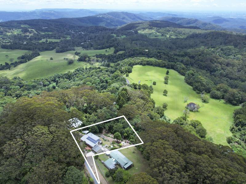 Set back at the end of a long gravel driveway, this 28 square (260m2) split-level designed home offers magnificent high easterly views across the treetops of the rainforest giving you glimpses of the ocean by day and the glittering lights of the Gold Coast skyline by night. The south easterly breezes, high louvre windows and 3 split system air conditioners keep you cool all summer, while the woodburning fireplace and the warm settings of the air conditioning keeps you as 'snug as bug in a rug' all winter long!