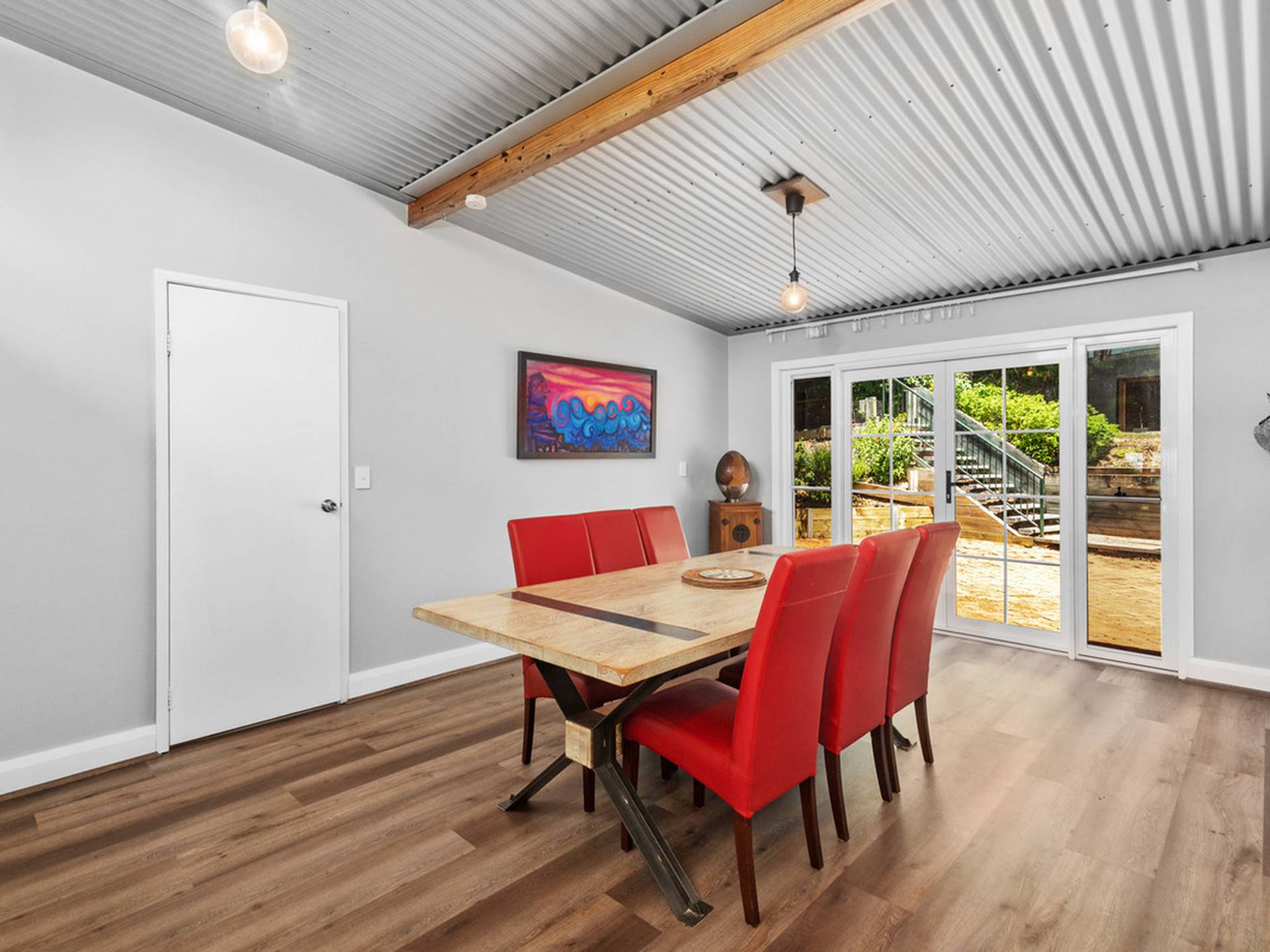 Enjoy the high raked ceilings that give you a great feeling of space, VJ feature character walls in the living area, quality engineered/ waterproof timber flooring for ease of cleaning and the comfort of quality carpeting. The entry/dining space has an exposed corrugated iron ceiling with descended lighting for that industrial chic feel. The 2 bathrooms have fantastic oversized frameless shower cubicles with quality tiling and fixtures and the kitchen, master bedroom and living areas are all a great size for spacious living. Relax on the rear outdoor balcony and entertaining area and feel like you are on holiday here every day!