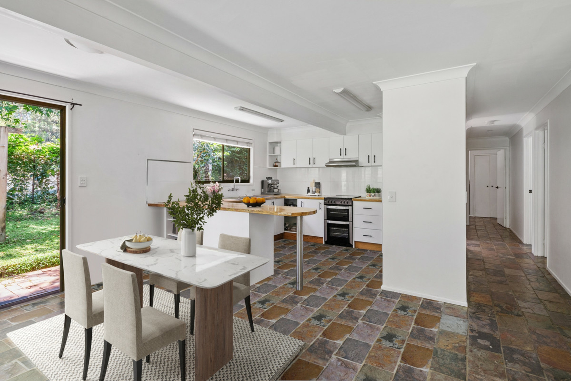 The modern kitchen features a practical layout and dishwasher, making daily living a breeze. Step outside to an expansive outdoor patio where you can relax and take in the peaceful bushland views. Additional highlights include a filtered tank water supply, internal laundry with excellent storage, a dedicated home office area, and ample vehicle accommodation with a large double car shed plus extra covered parking. The fully fenced property is pet-friendly, offering privacy and security in a tranquil natural setting.