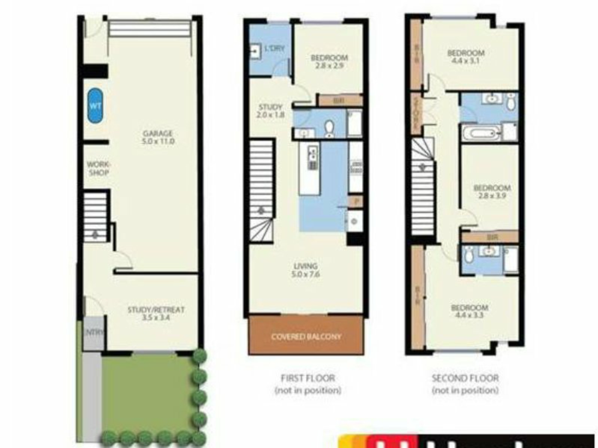 one bedroom and study room on second level, the other three bedroom on third level,