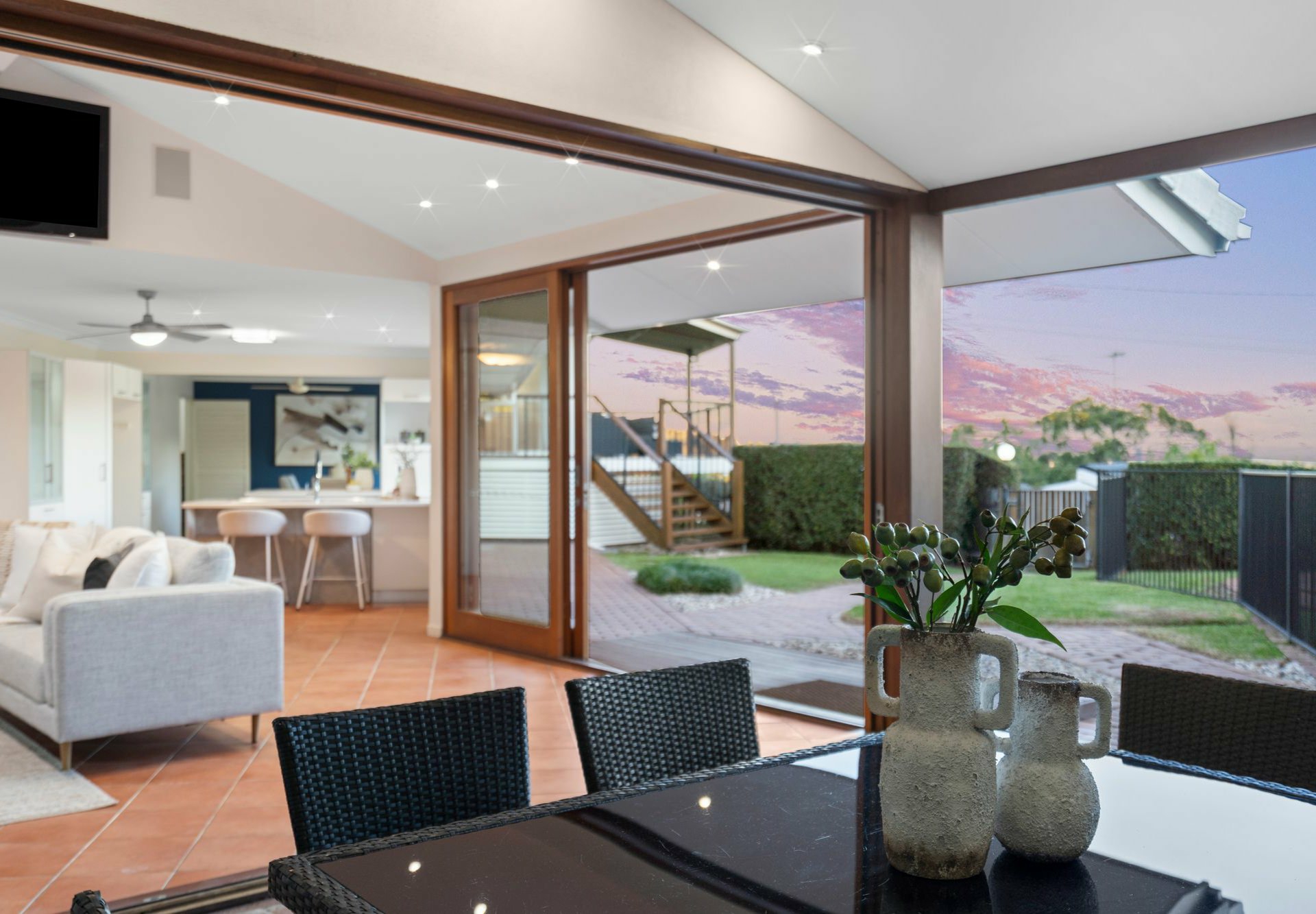 From the moment you enter, the wide frontage and lush elevation set the tone for a home that blends elegance with comfort. Timber accents, tiled floors and expansive windows frame the views and let natural light pour in across the open-plan living, dining and rumpus areas. The split-level layout creates interest and heightens the sense of space whilst also providing the separation that most families desire. Bi-fold timber doors extend the living space outdoors to an expansive alfresco - complete with ceiling fan - perfect for hosting summer barbecues or relaxing poolside with a drink in hand.