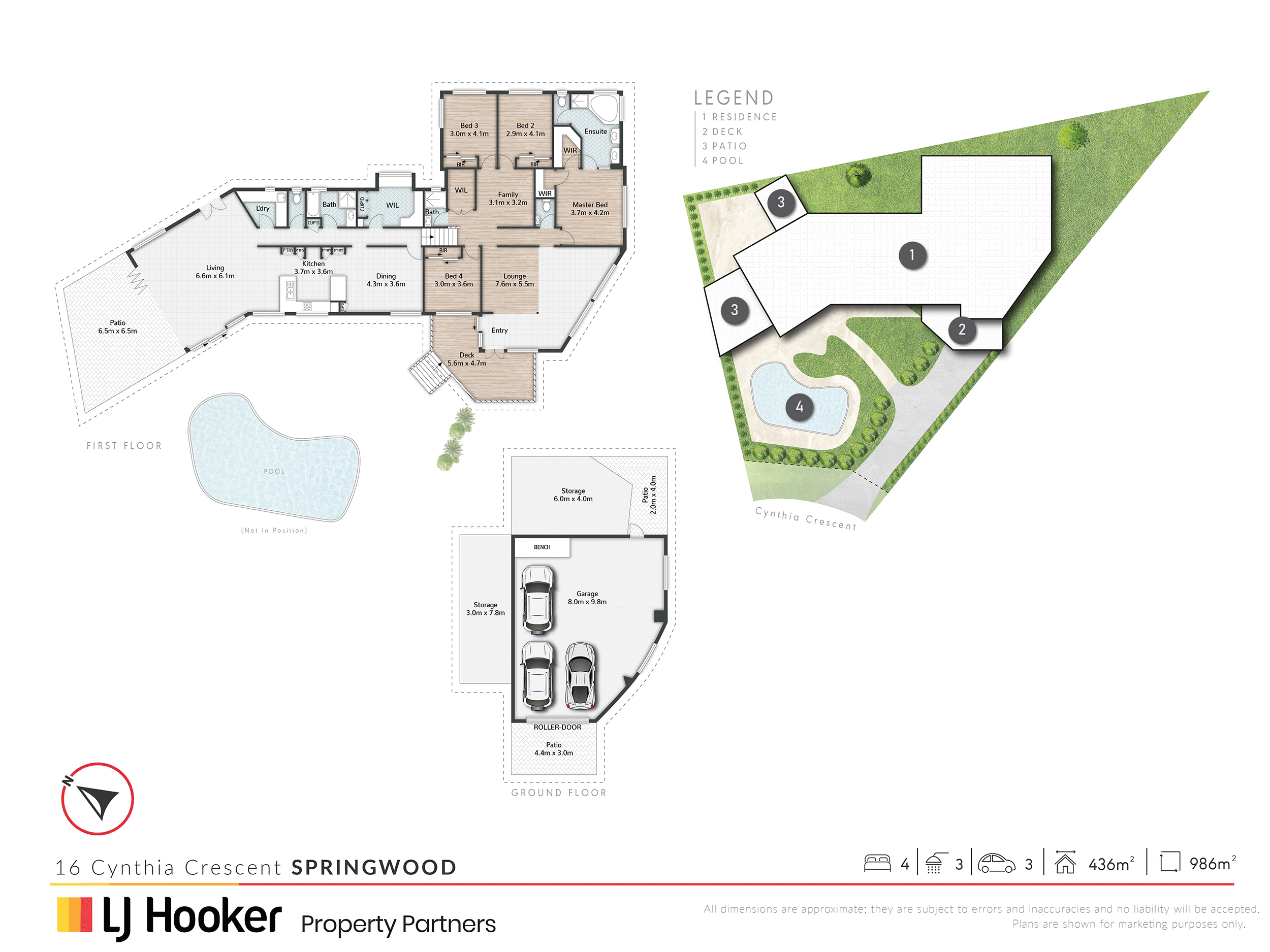 5. Multiple living areas, sparkling pool, triple garage, prime location.