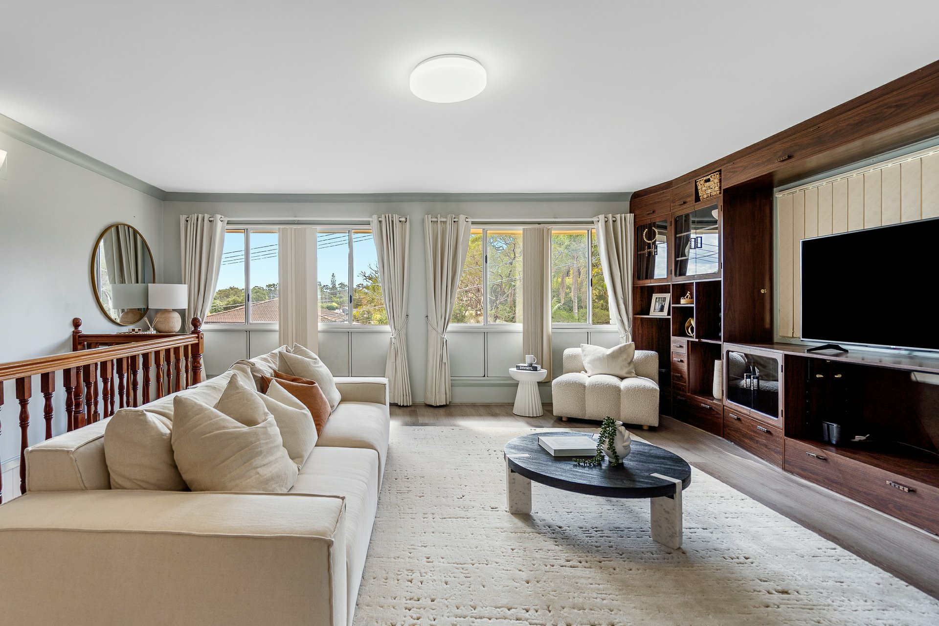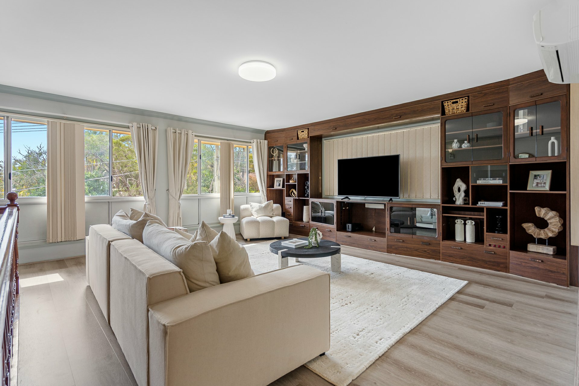Upstairs, the new flooring has also been laid in the large family room off the landing, and another 4 bedrooms. Three of these have BIRs and share a central bathroom with shower, while the super-sized master will stop you in your tracks! Look forward to sweet dreams as you drift off gazing at the stars through the windows high above in the recessed ceilings, comfortably store all your clothing in the spacious WIR, and take advantage of the twin shower set-up in the ensuite.