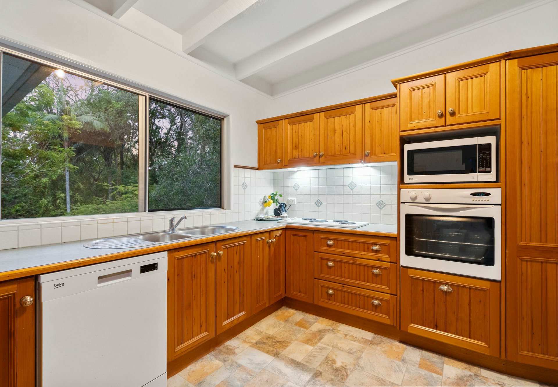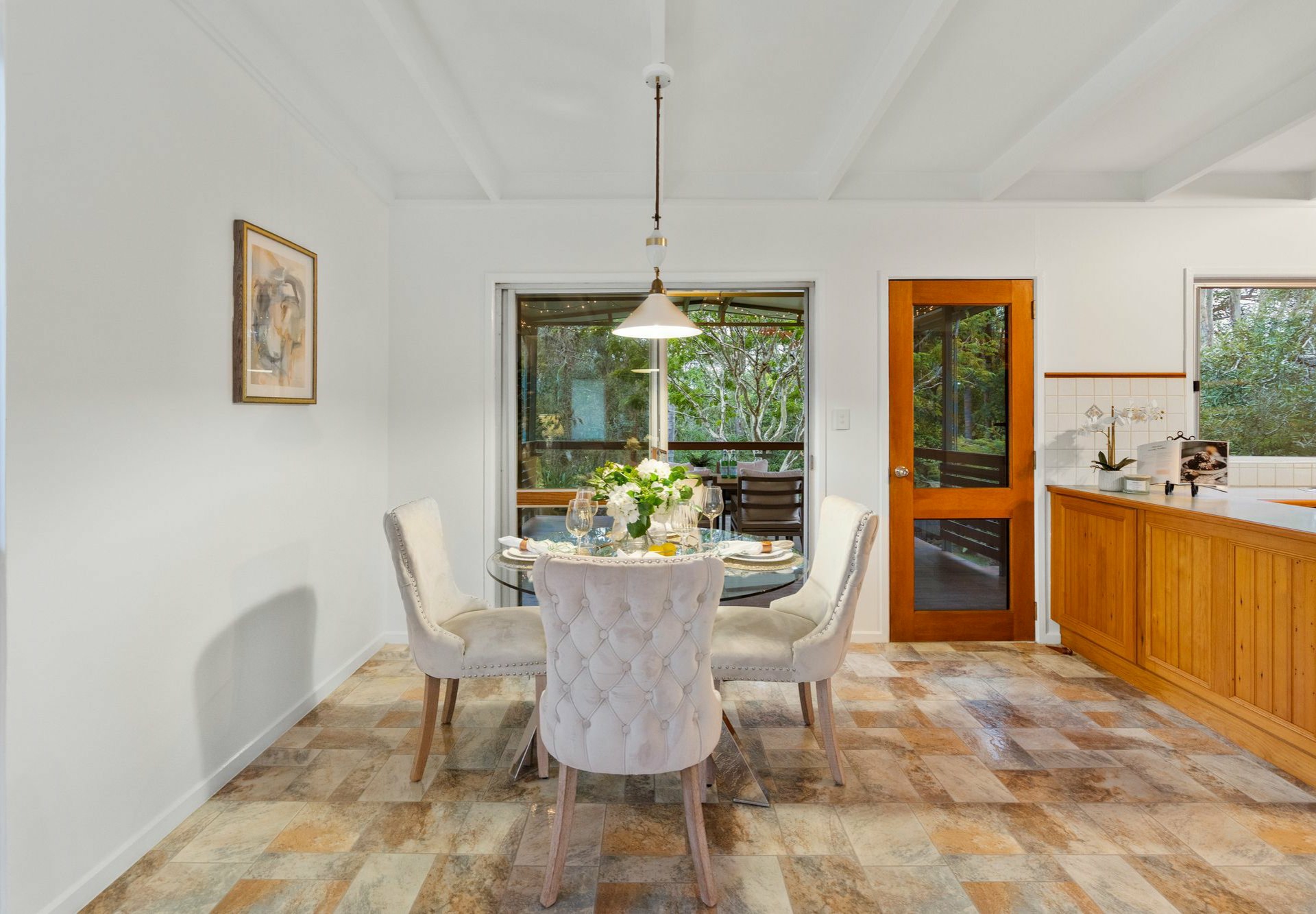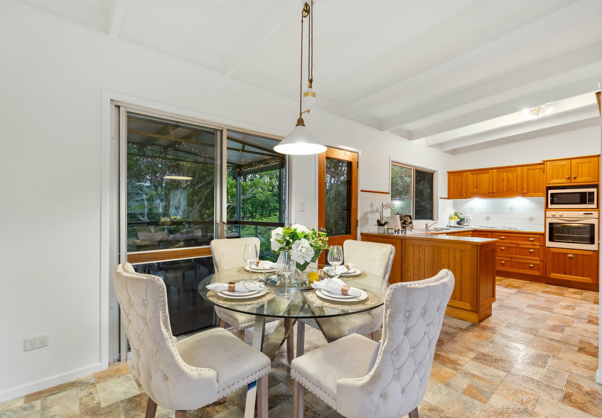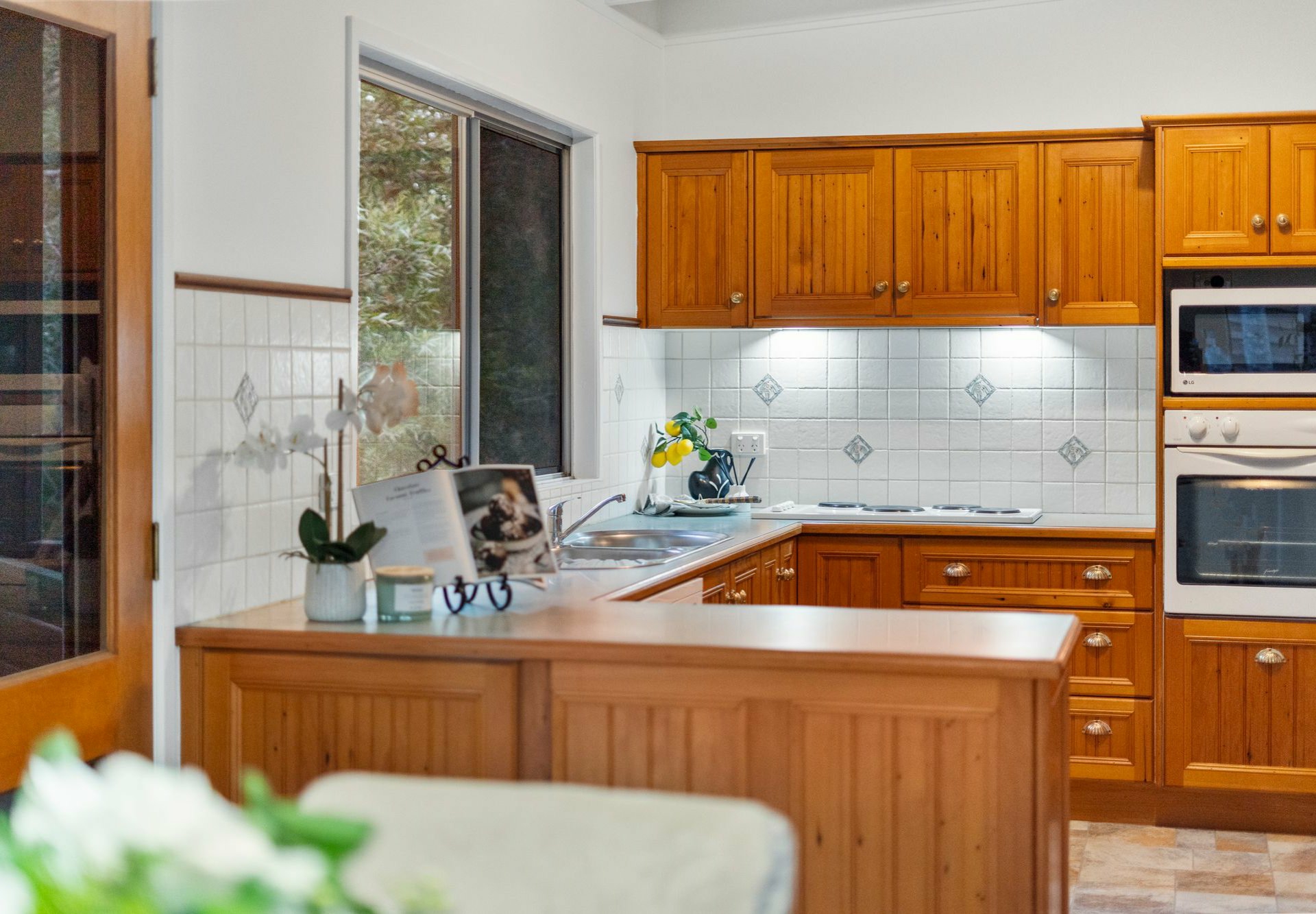 The family kitchen anchors the home with solid timber cabinetry, ample storage and charming character. With generous bench space, meal prep is a breeze. Serve up breakfast in the adjoining dining space or head outside to a wide entertainer's deck for an elevated alfresco dining experience amidst a natural soundscape.