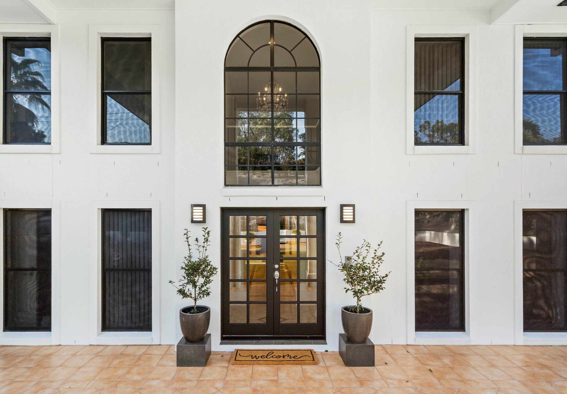Beyond the wide circular driveway and manicured lawns, the pillared facade and terracotta-tiled roof create timeless curb appeal. Step through the classic double doors to a grand entryway framed by architectural columns, double-height ceilings and a chandelier.