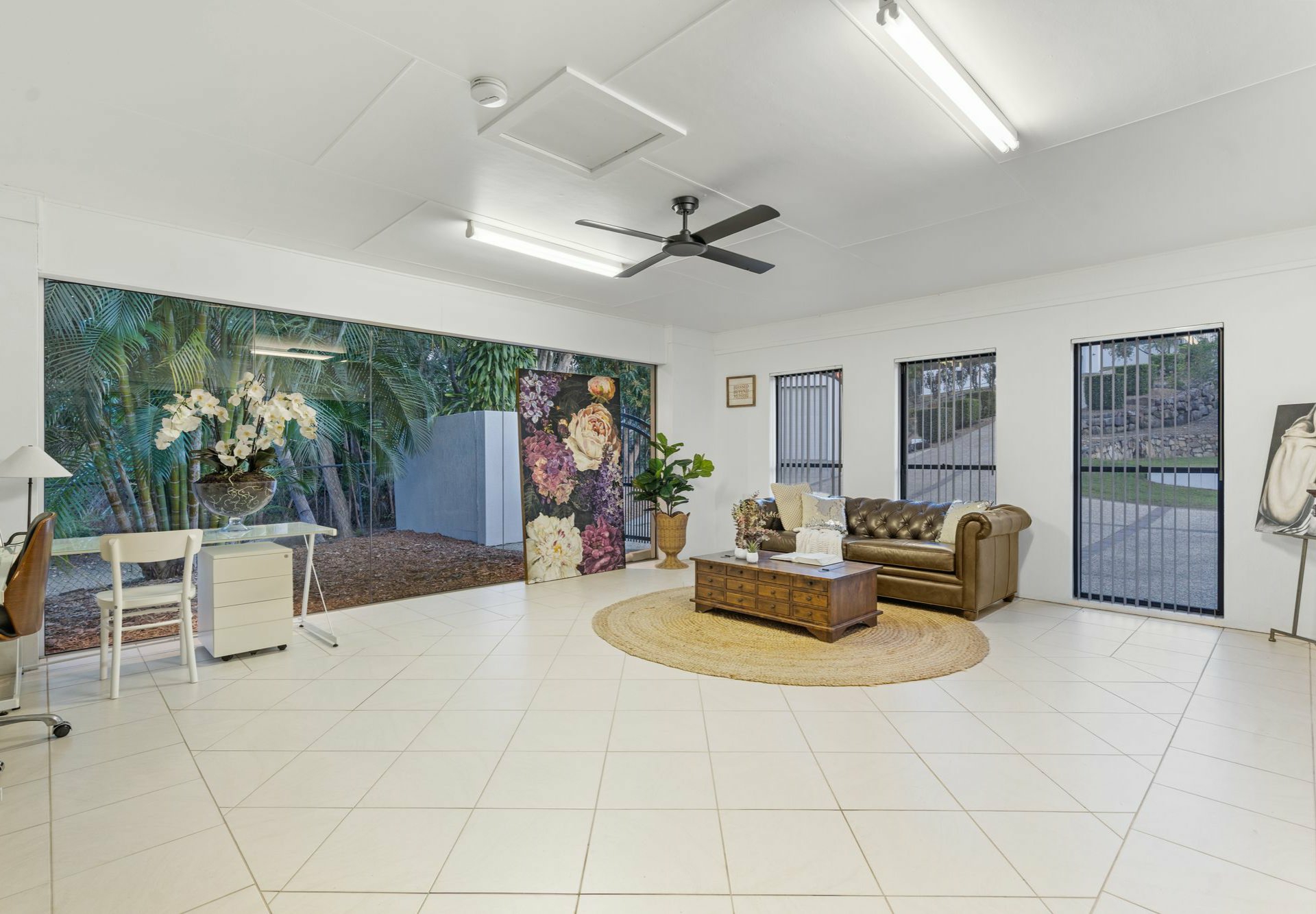 Smooth sliding doors extend to the dual resort-inspired patio spaces designed for year-round comfort. Ceiling fans and outdoor speakers set the mood, while the solar-heated saltwater pool shimmers against a lush, green backdrop. Framed by new timber decking and secure fencing, it's a private outdoor oasis where children and pets can play freely. Make lifelong memories under the stars with a charming cubby house and swing set surrounded by lush greenery.