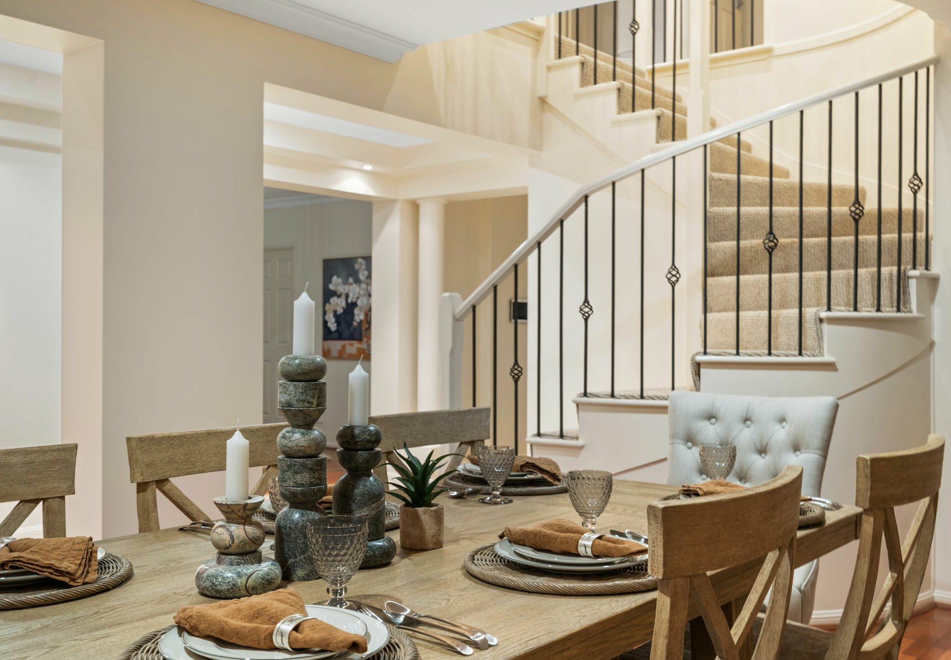 Downstairs, the floorplan caters perfectly to family life, balancing space and versatility. A formal dining room with polished timber floors and a sweeping staircase sets a refined tone for special occasions. Nearby, a private wing accommodates a study, media room, and multipurpose guest suite - ideal as a teenage retreat, games area, or extended family space.