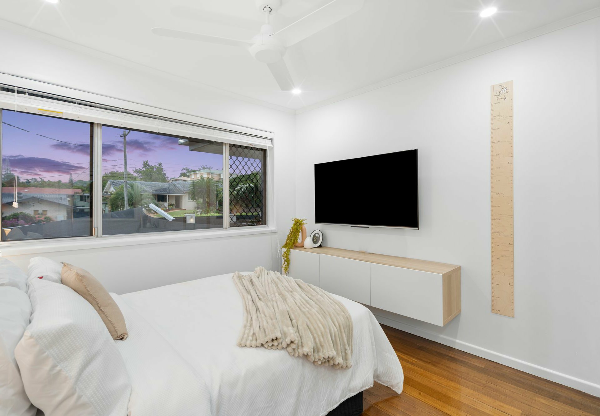 When the sun's shining, the kids can safely play under your watch on cushioned grass out front or in the backyard, which also has a cute timber cubby house. If it's too hot or raining, set up a table tennis or pool table on the concreted patio below the balcony.
