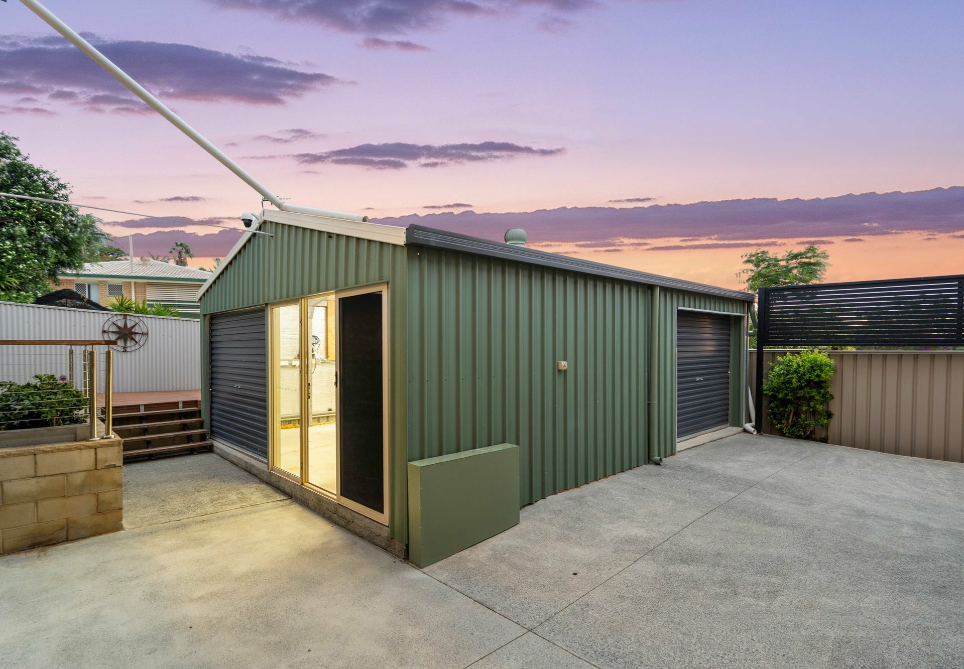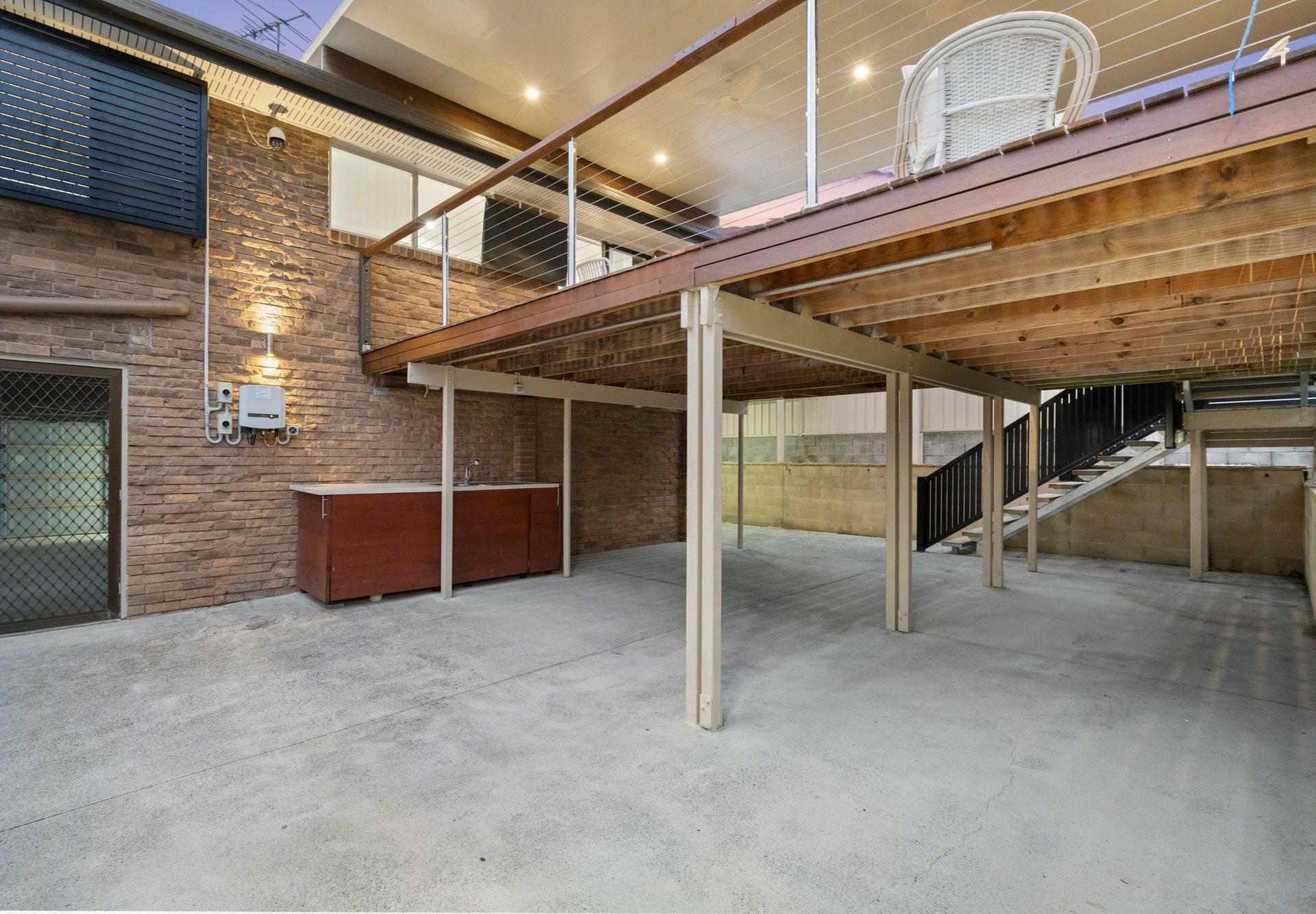 - Huge timber-decked covered balcony, games area below + a versatile studio with AC