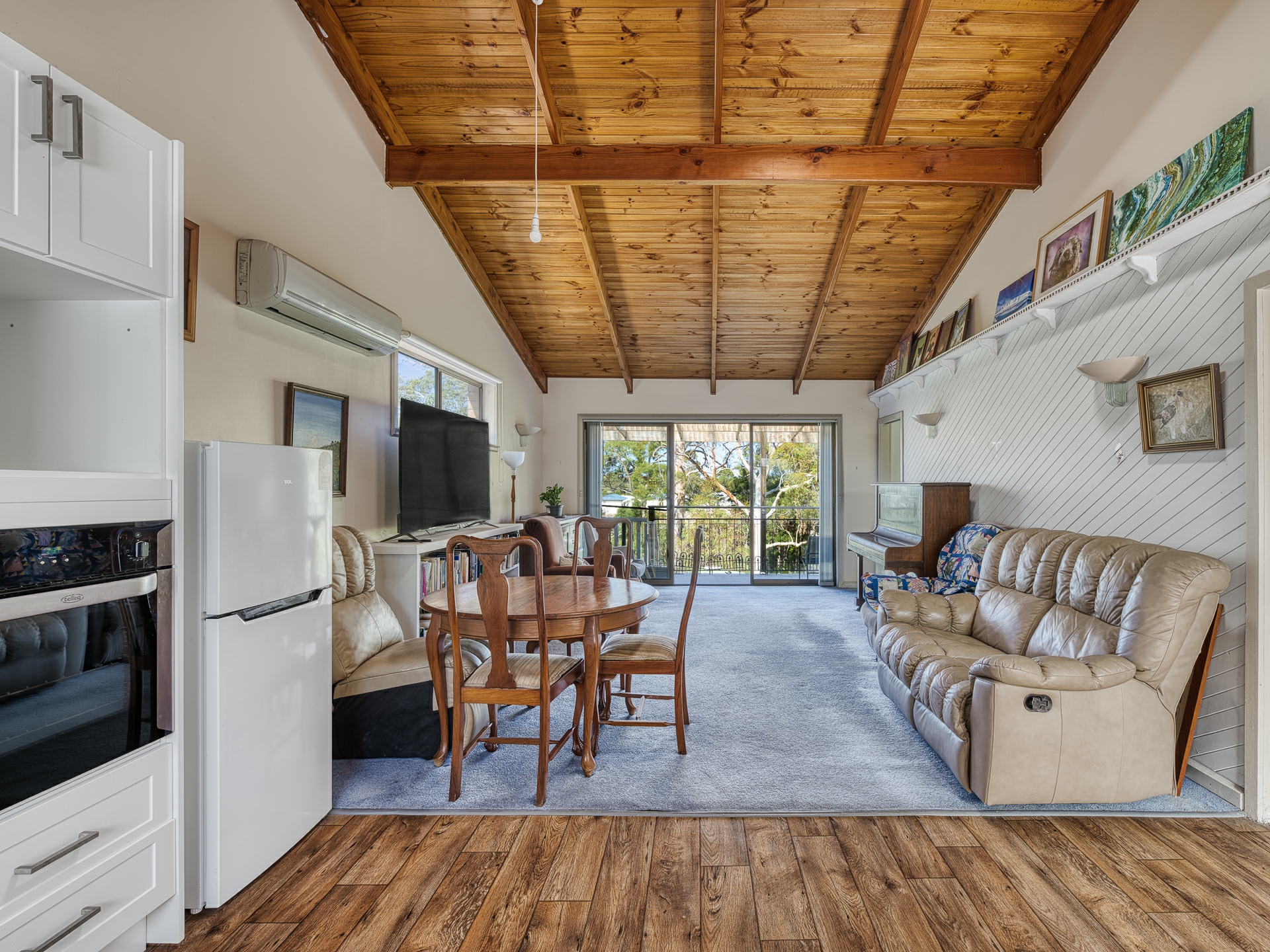 Wake to birdsong and filtered morning light in this peaceful two-bedroom retreat, tucked away on a quiet street with an elevated bush outlook. From the master bedroom and living area, leafy views stretch across the garden and into the gully below, creating the feeling of living high among the treetops.
