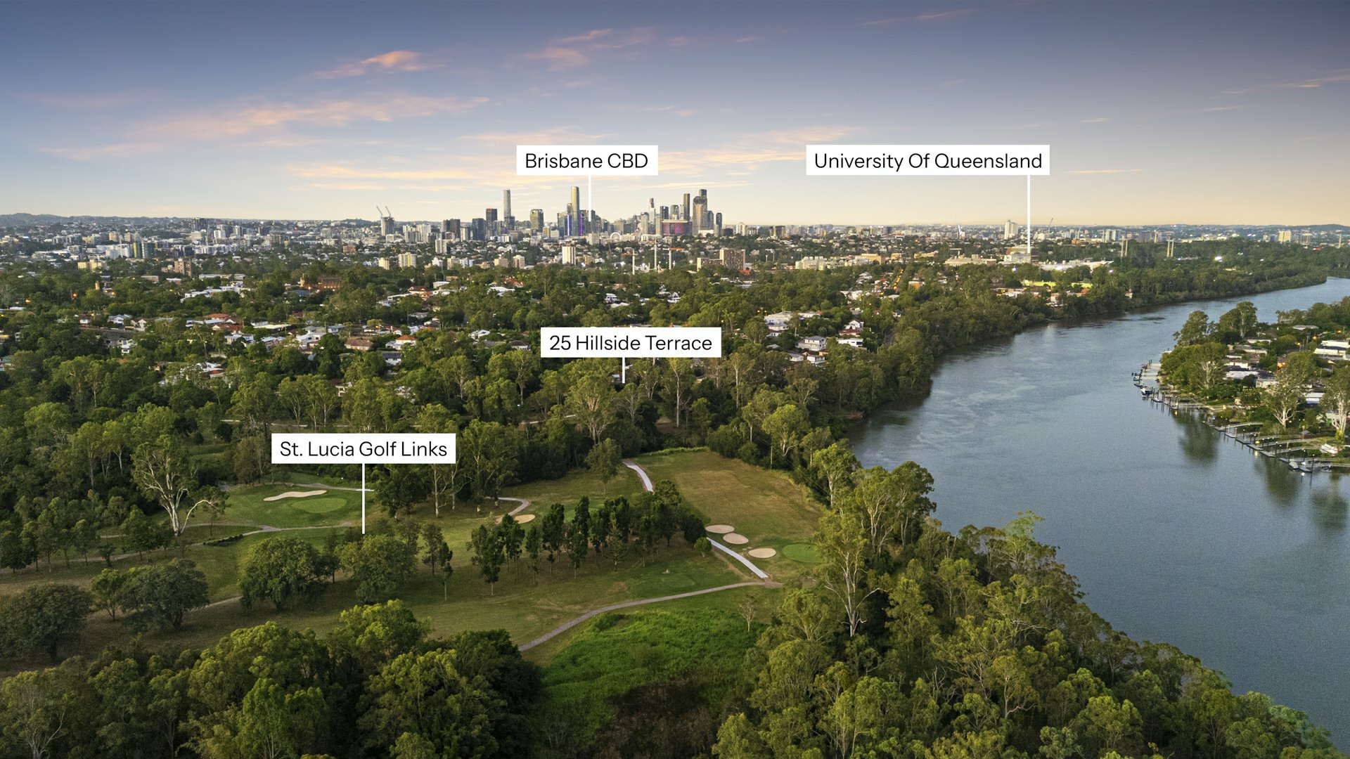 Elevated north-facing position with golf course and Brisbane River views