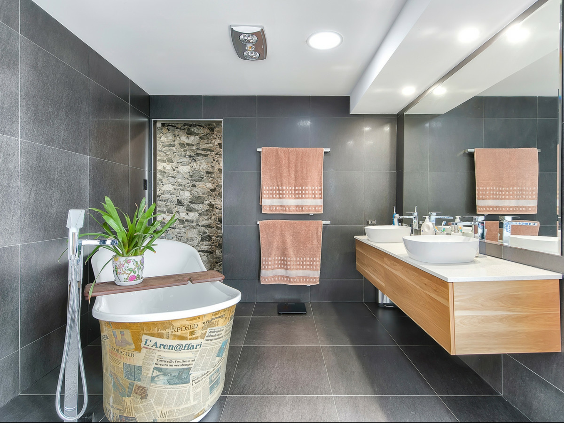 + Designer hand-finished 1800mm bathtub manufactured with comfort in mind, and south/south-west facing to capture sunset vista or just enjoy TV entertainment.