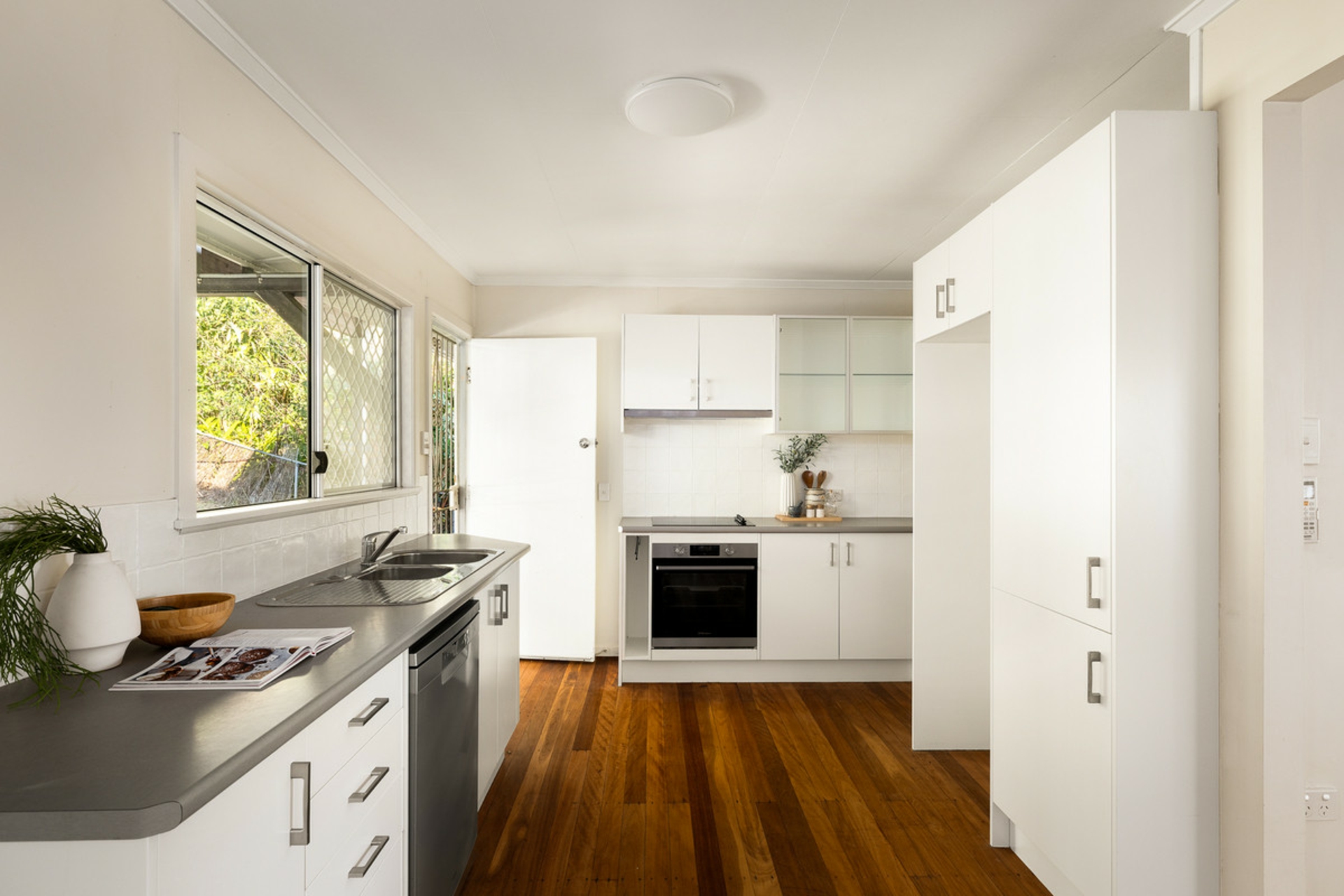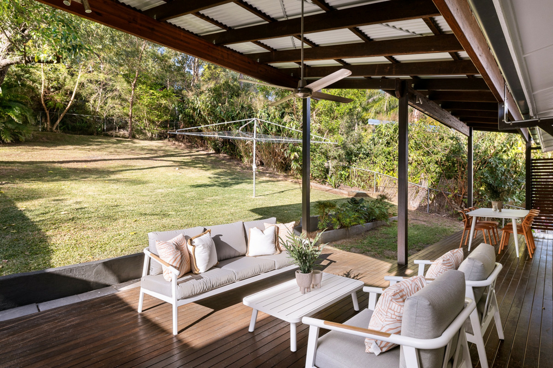 Sitting elevated in a quiet location, the centrepiece of this property is the fully covered, north-facing timber deck. With an angled ceiling soaring overhead, this space's atmosphere will enhance many family memories and summer BBQs. There is then a line of sight that extends to the rear of the block, and showcases the lovely lush outlook that accompanies the home. This private al fresco perfectly leads to the large, low-maintenance backyard, with a 663sqm block underpinning the property.