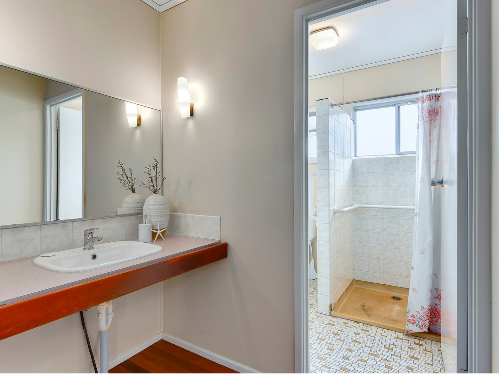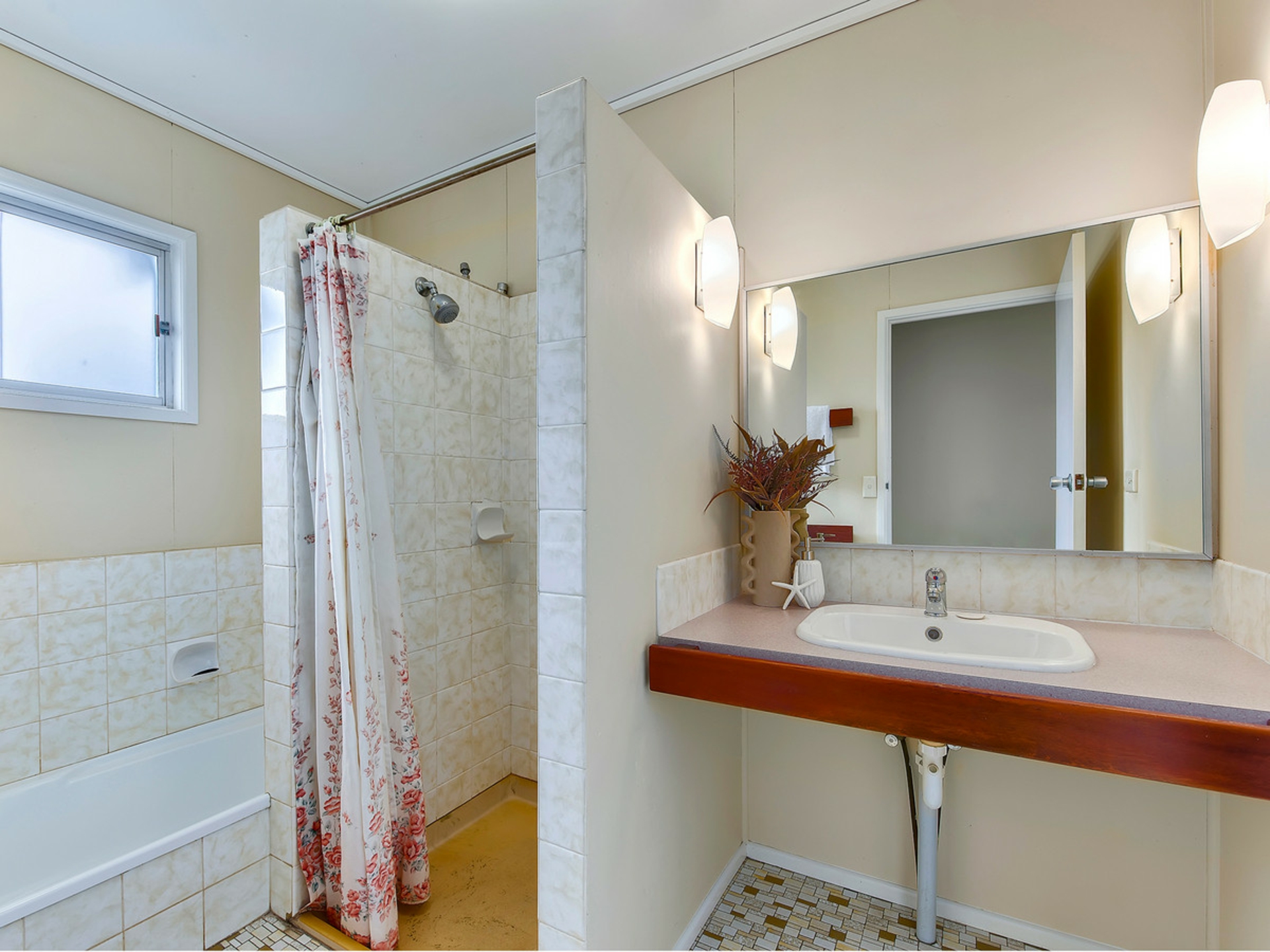 • Original kitchen and bathrooms.