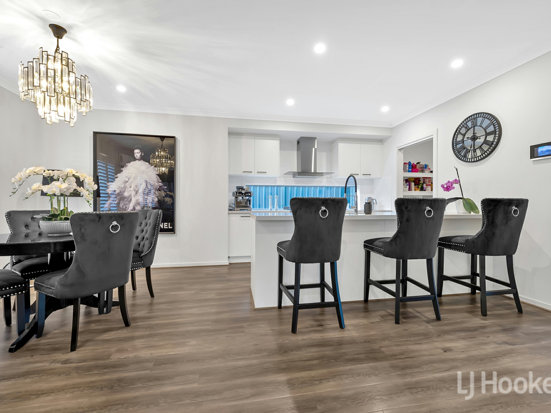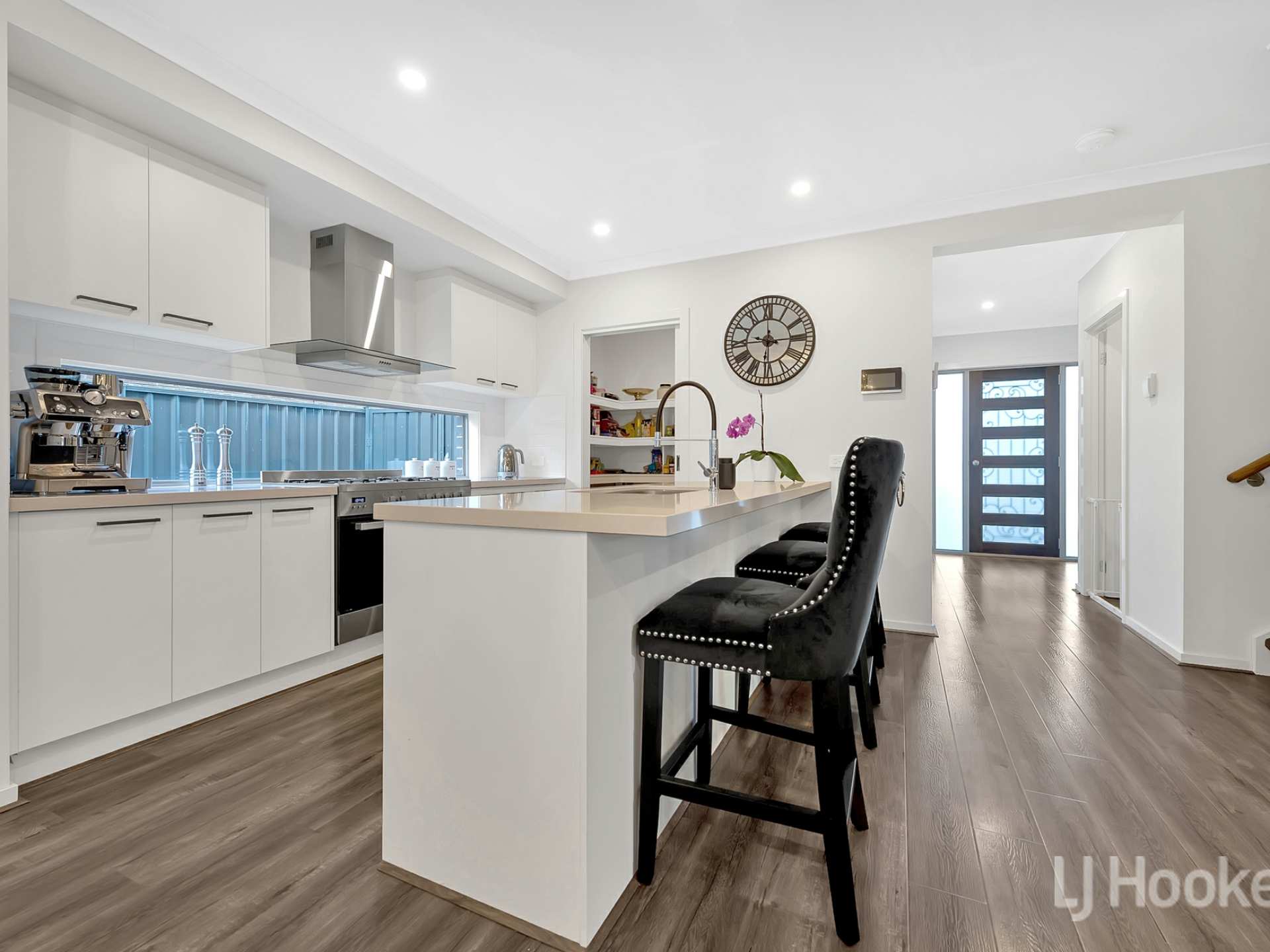 Down stairs featuring a flowing open floor plan, bonus study room at the front of the property, complete powder room and laundry with internal access to garage. Walking through to the light filled living room, dining and kitchen area, fitted with 900mm stove and oven, walk in pantry, 40mm stone bench tops and more.