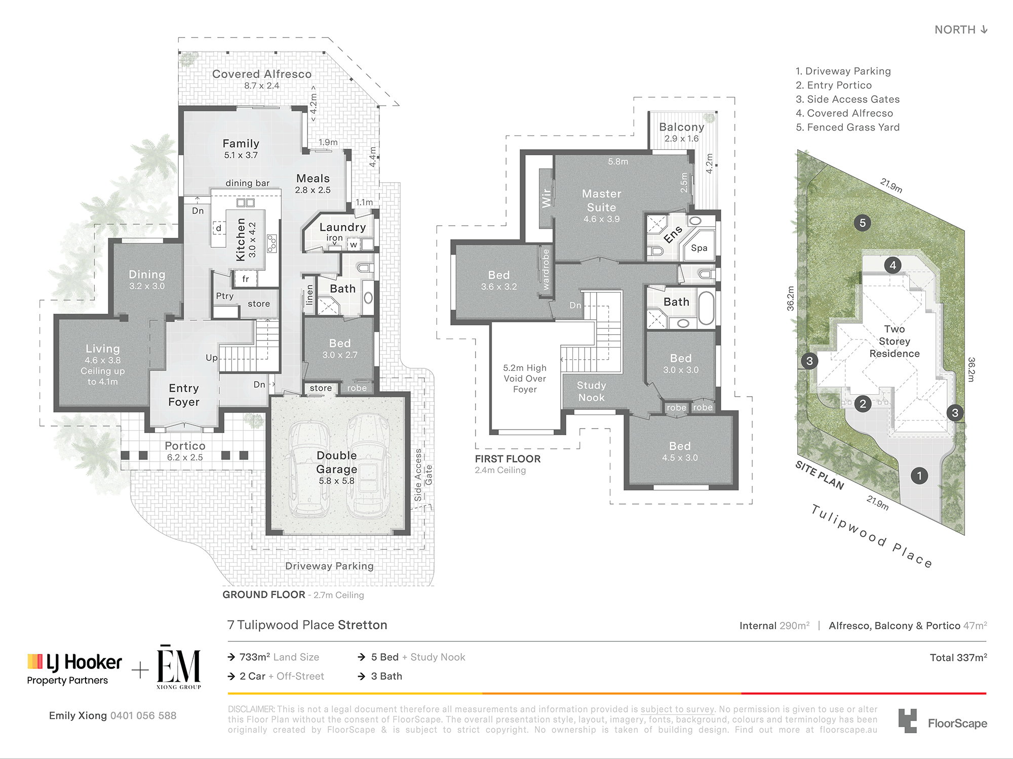 Four additional bedrooms provide ample flexibility for families, while a convenient downstairs guest bedroom enjoys access to a two-way bathroom - ideal for extended family or visitors. An upstairs study nook adds further practicality for work, study, or quiet reading.