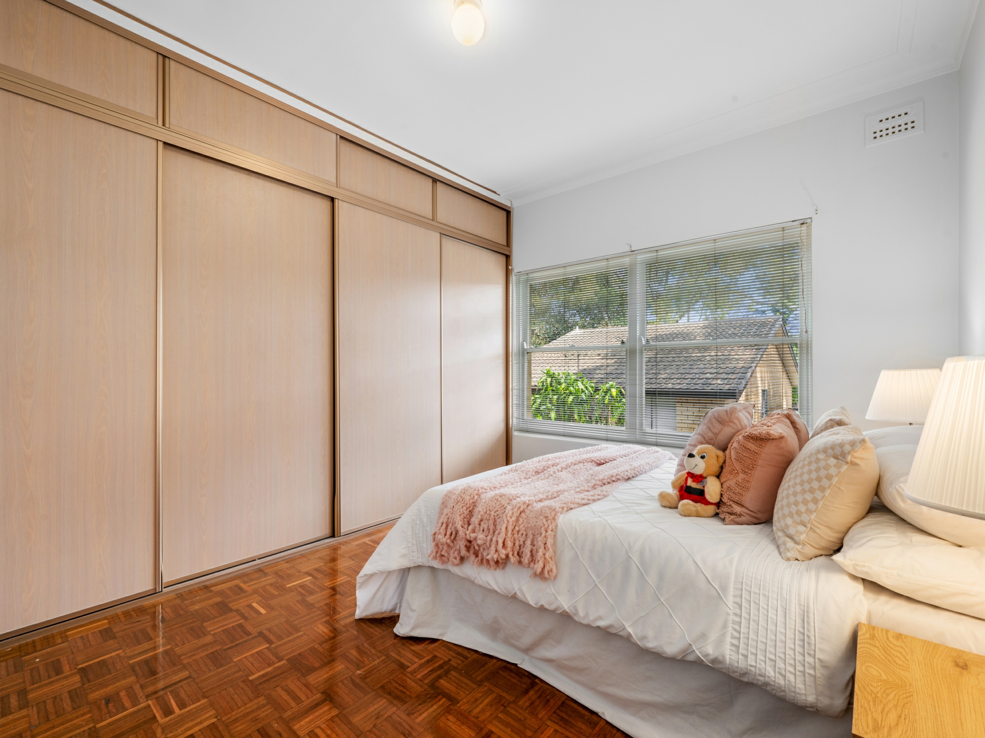 -Generous bedroom - Features a wall of built-in wardrobes and large windows framing a leafy aspect.