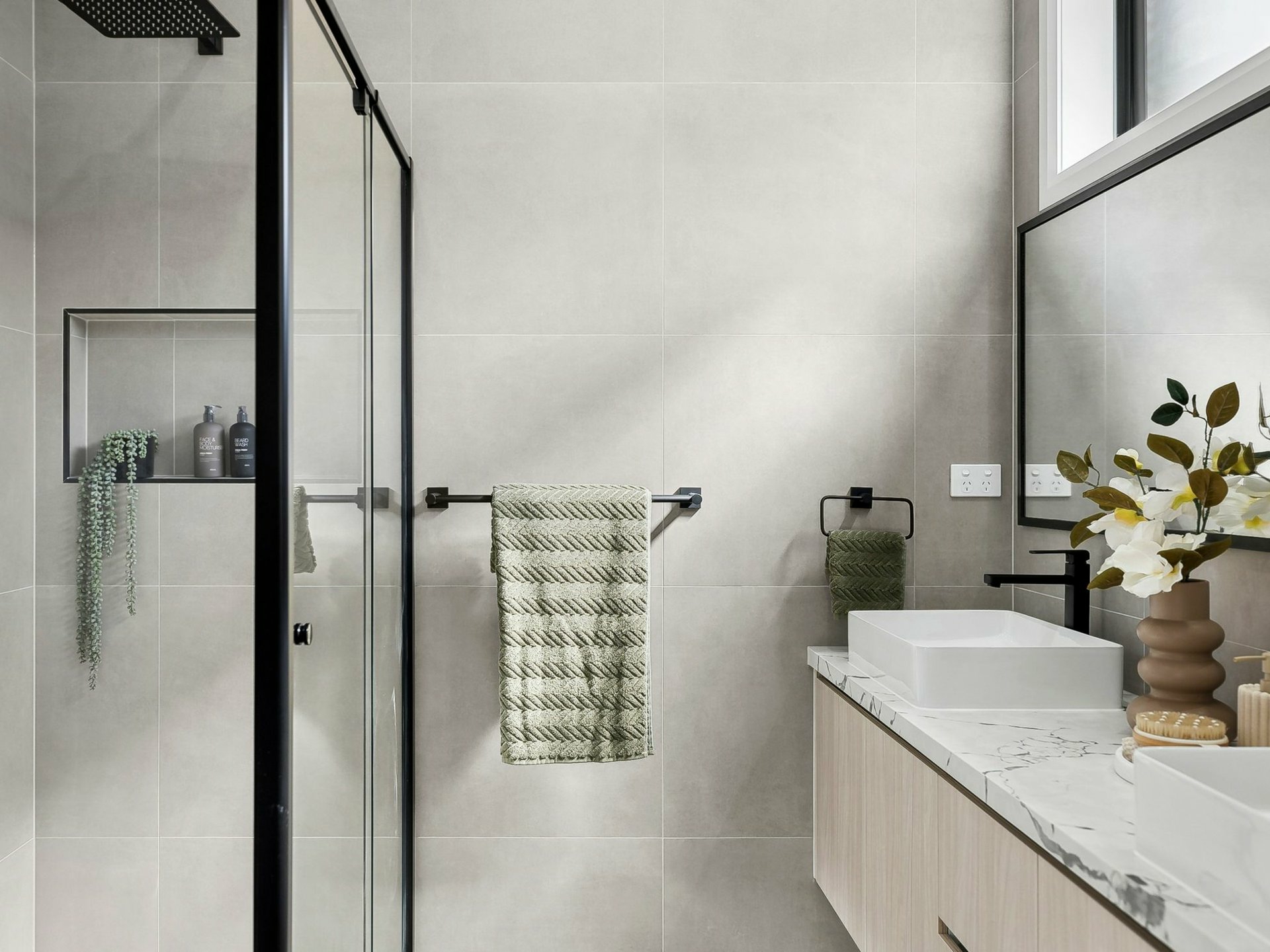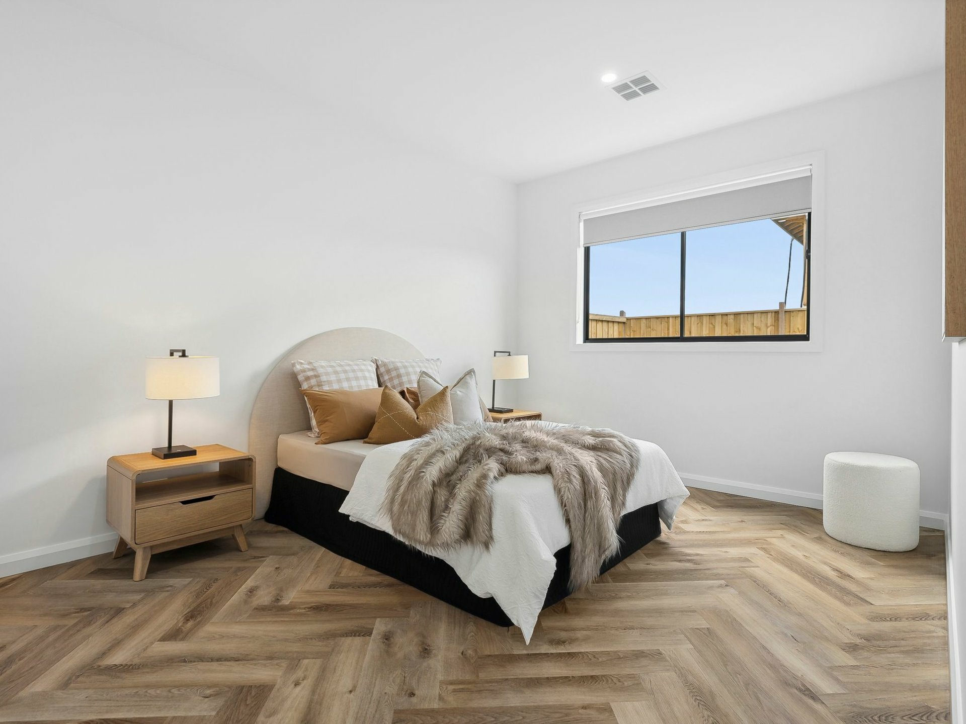 The master bedroom is a true retreat, boasting an expansive layout, a large walk-in robe, and a luxuriously appointed ensuite complete with a floating double vanity with stone benchtop and extended shower. The second bedroom also enjoys its own walk-in robe, while the remaining two bedrooms come with built-in robes – ideal for families or guests.