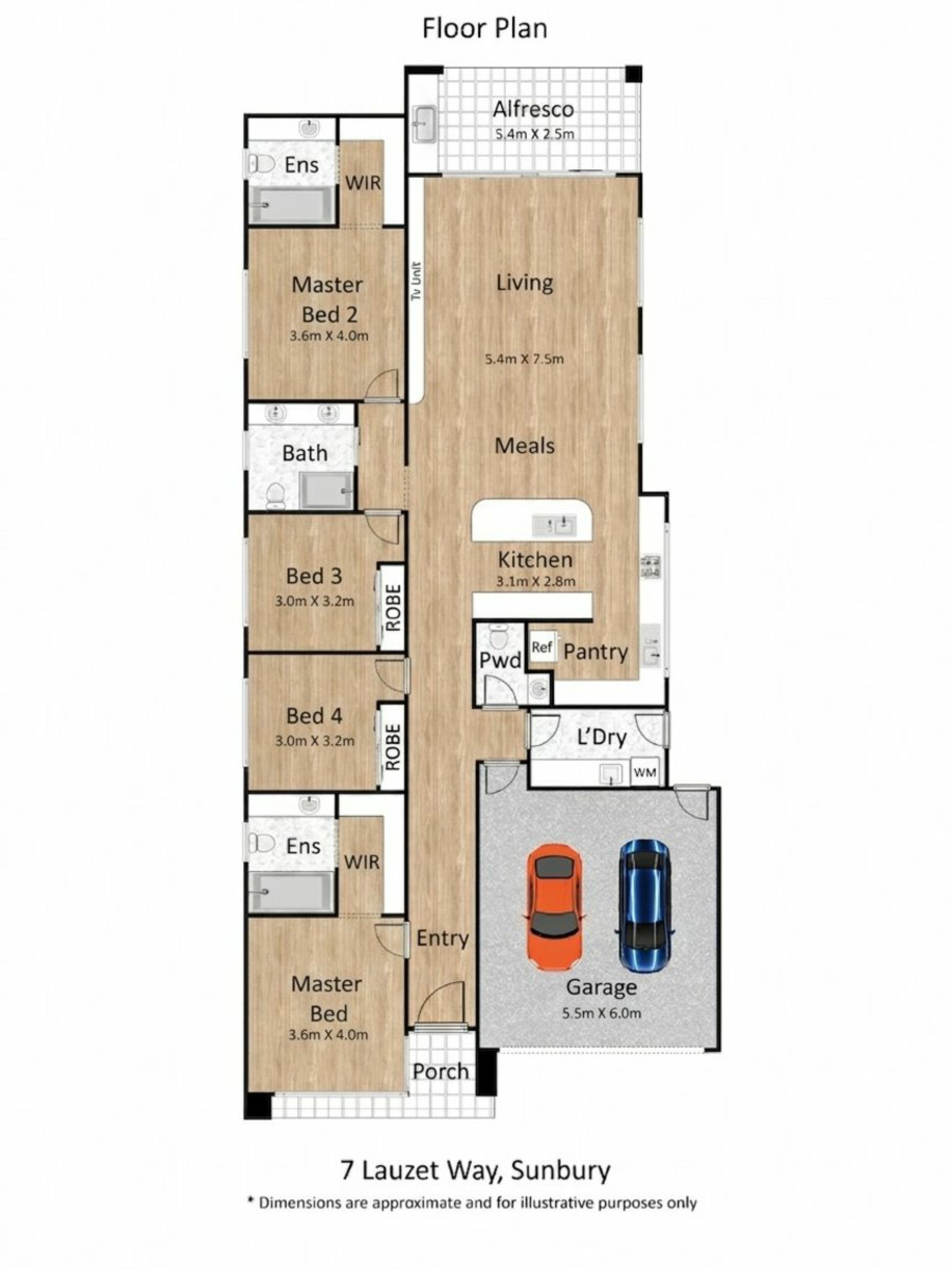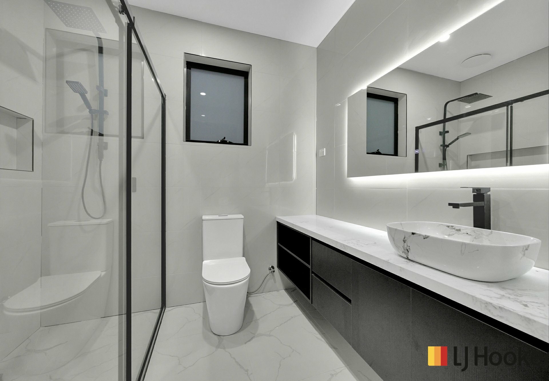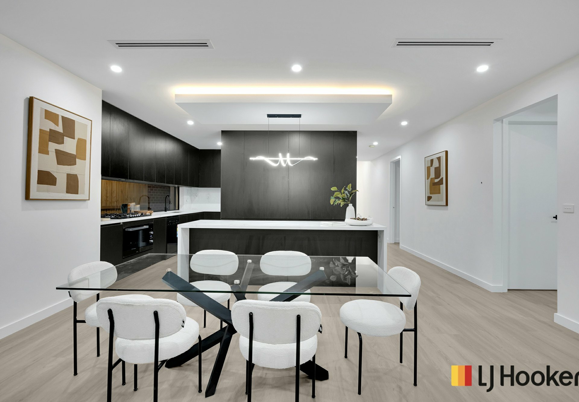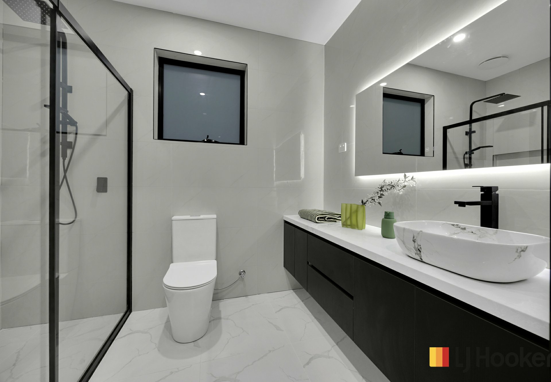 The home comprises four generously sized bedrooms, including two master suites, each with its own en-suite and walk-in robe. The remaining two bedrooms feature built-in robes and are serviced by a luxurious central bathroom, complemented by a separate guest powder room. The open-plan layout seamlessly connects the kitchen, dining, and living areas, creating a warm and inviting space designed to bring families together.
