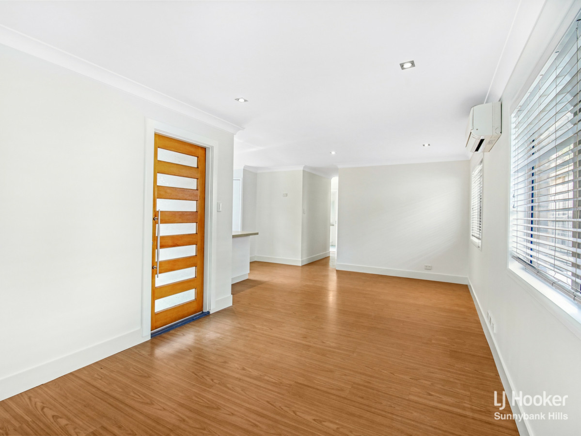 Stepping through the contemporary timber door you'll find the vast open-plan lounge and dining area. Featuring new paint, downlights, air-conditioning and trendy timber laminate floors, this bright and airy space connects onto the well-appointed kitchen.