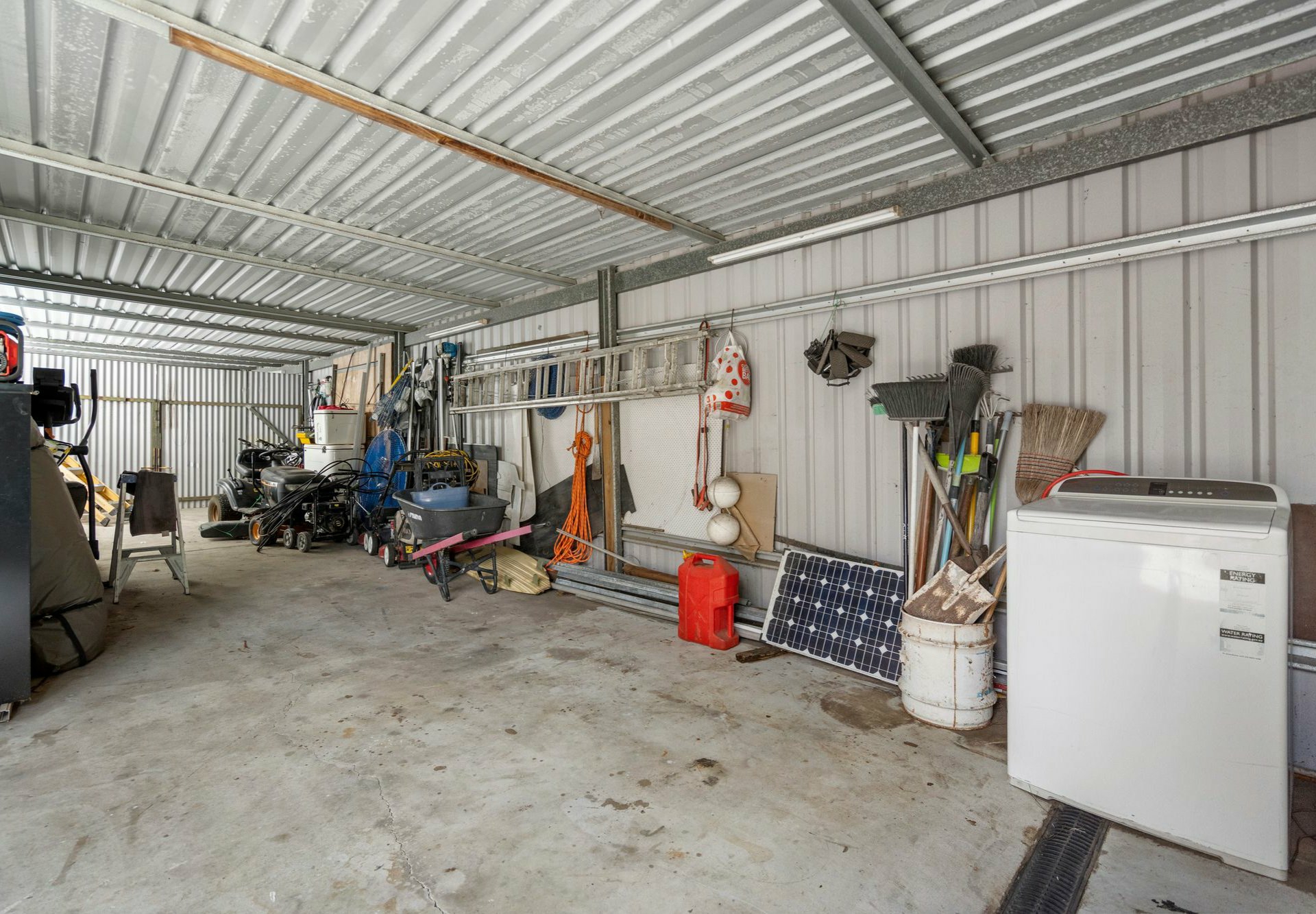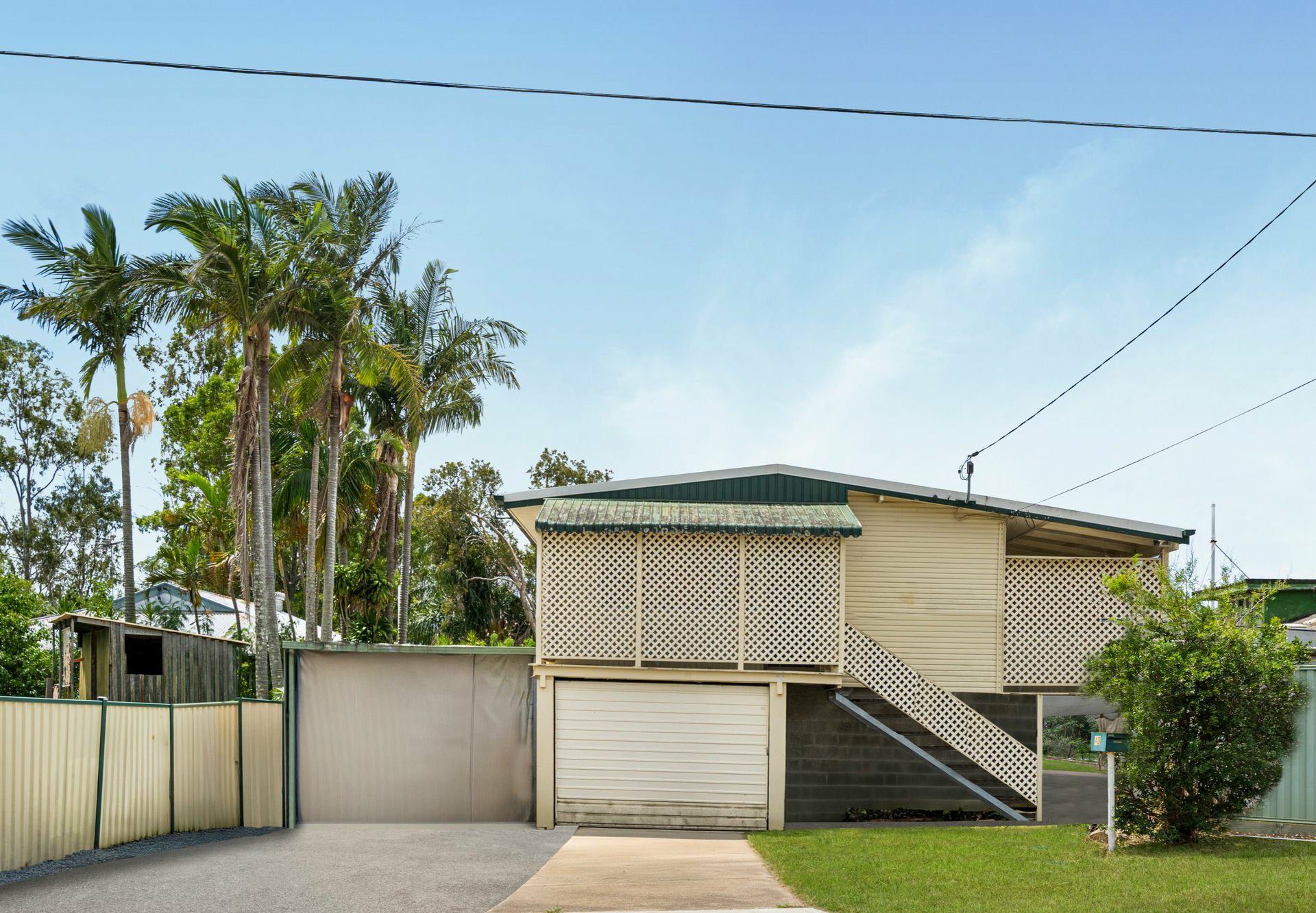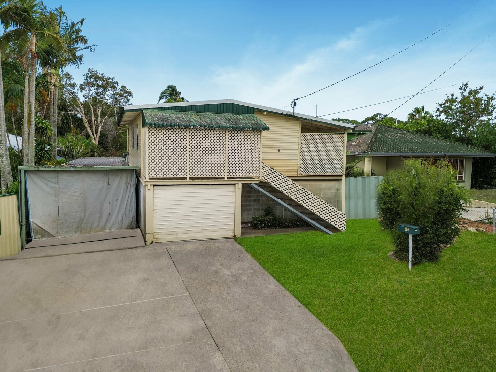 - Single garage under the house + side carport cover for 3 & a secure workshop