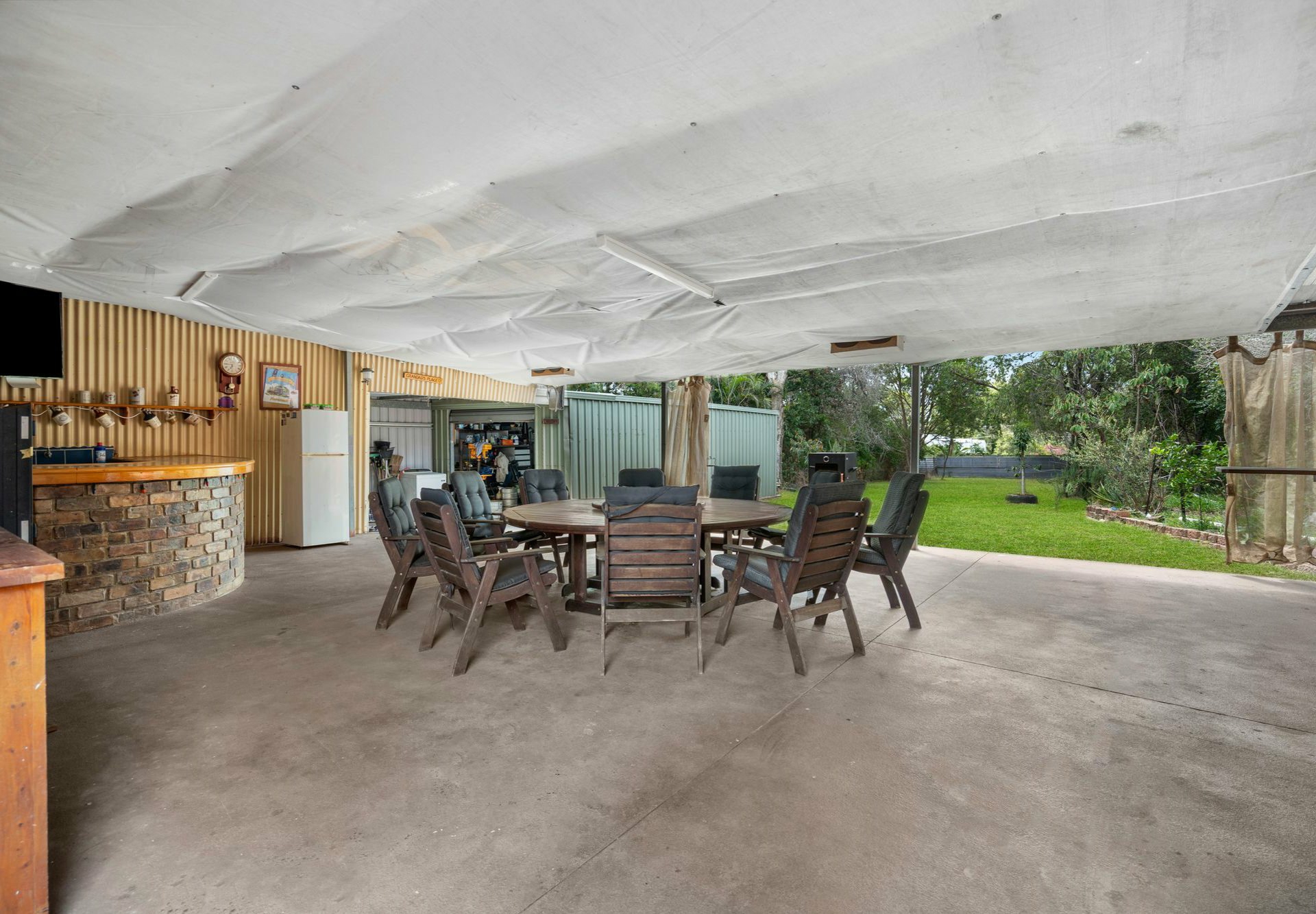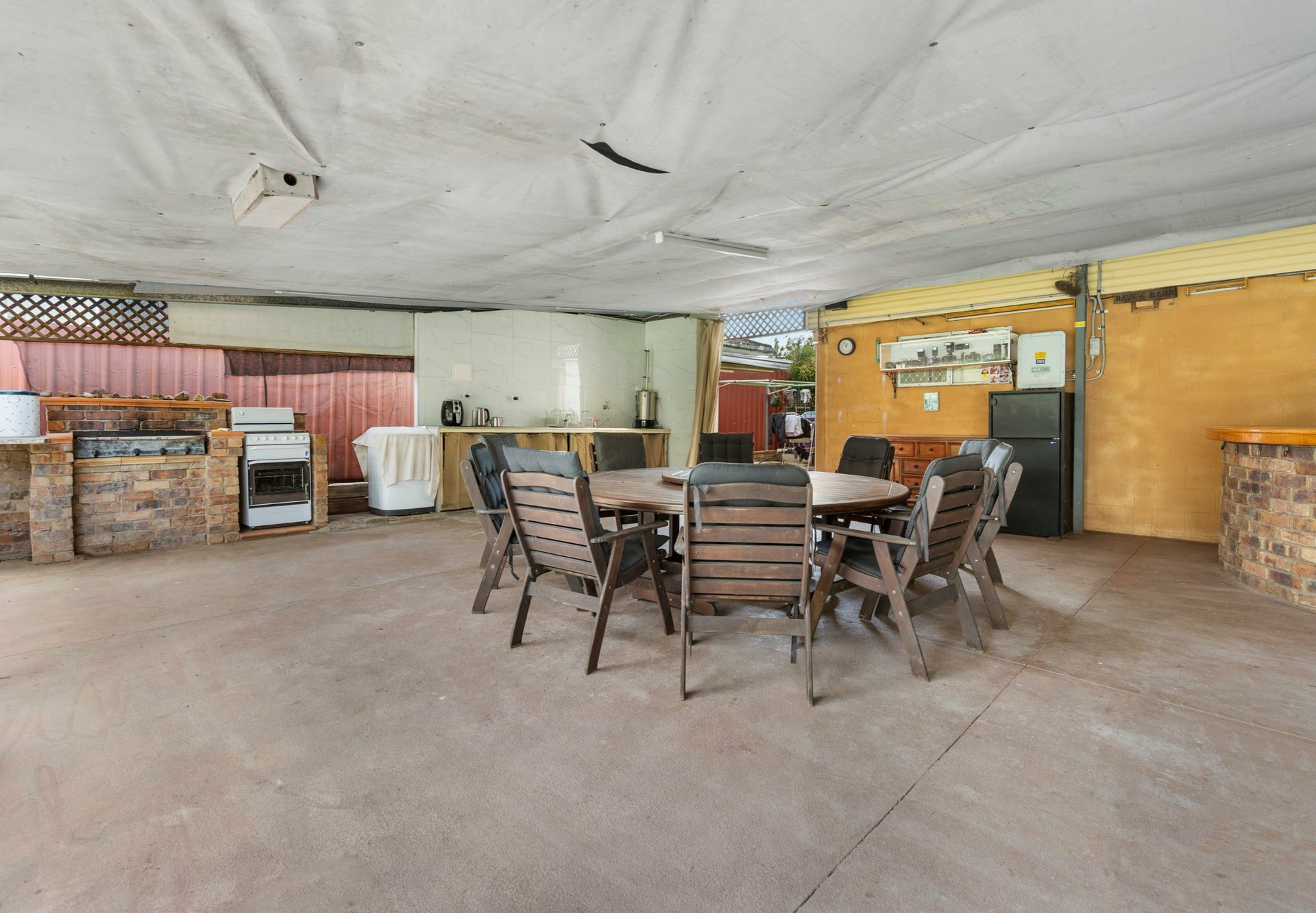 - Big concreted undercover entertaining area with a bricked bar & BBQ station