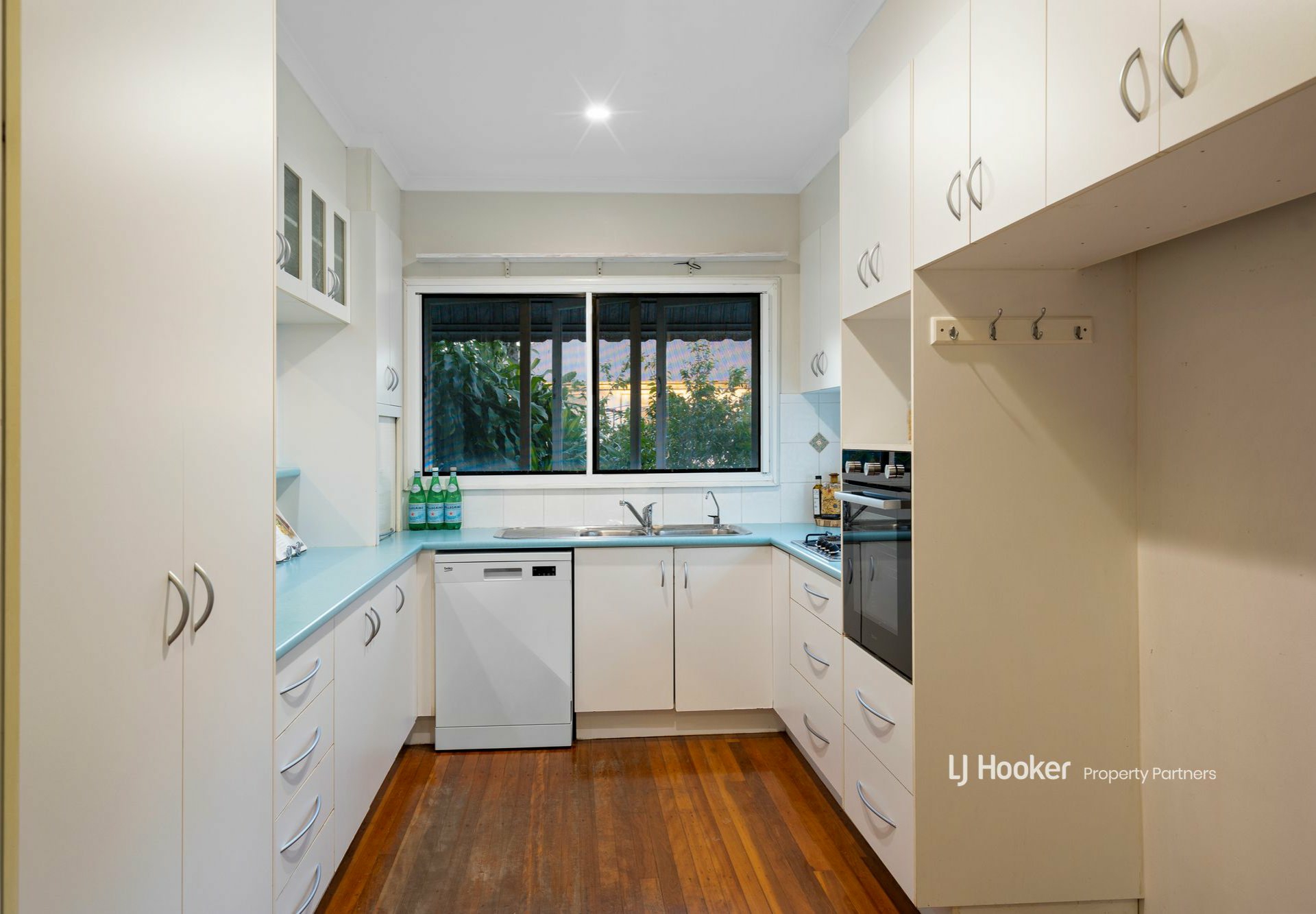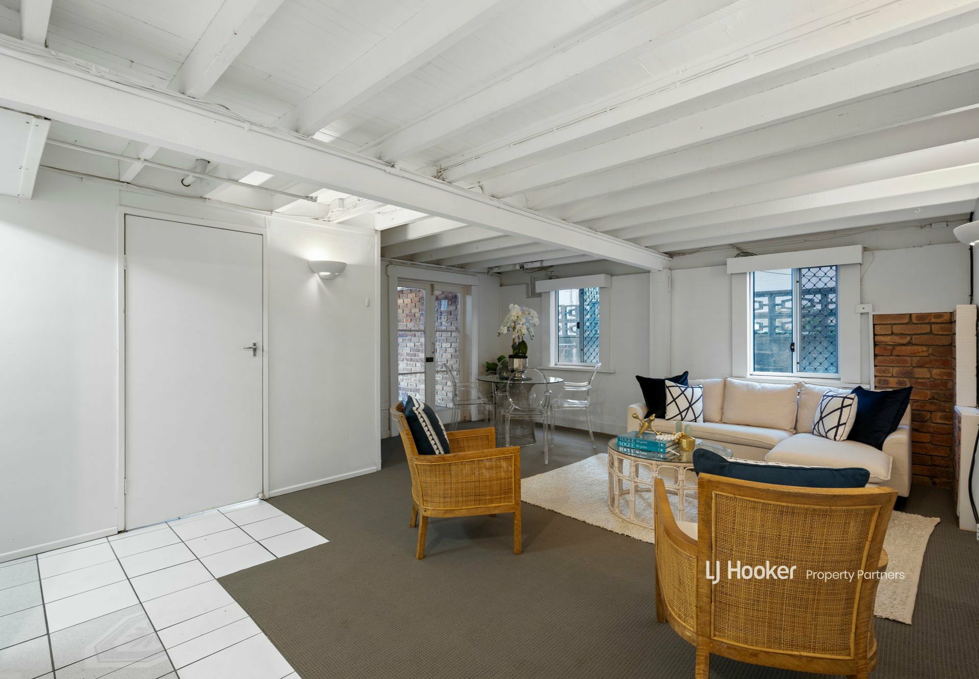 The freshly painted lower level comprises a central kitchenette surrounded by 3 multi-purpose rooms (MPR) and a combined lounge/meals area that opens through glass-paned French-style doors into a handy storeroom. Two of the MPRs and the lounge are newly carpeted, with hybrid floors to the third MPR. There's a full bathroom down here too, with a space-saving shower-over-bath combo, a separate laundry, and access out to a large covered patio for alfresco entertaining.