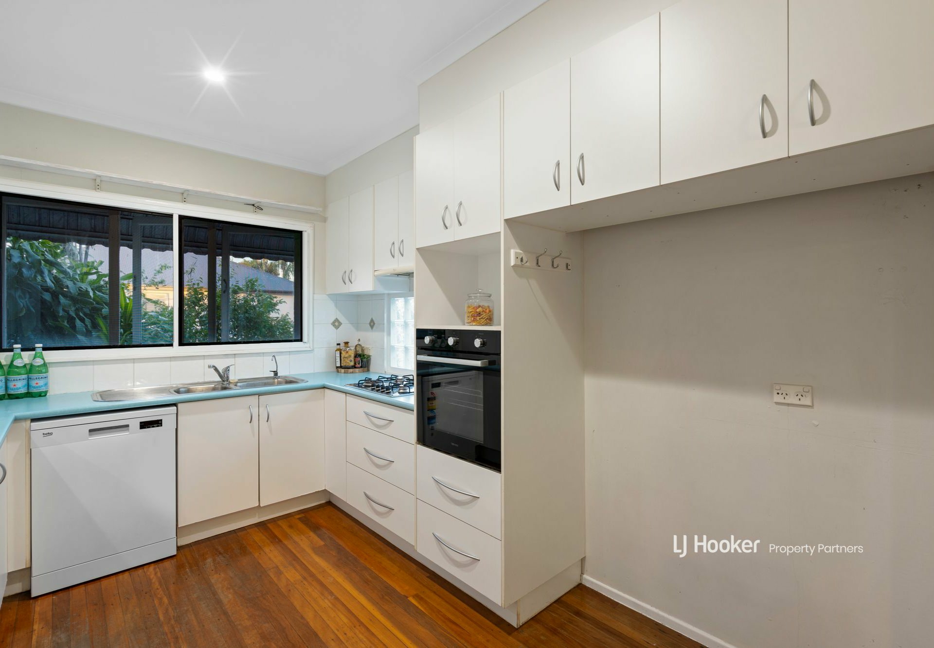 Upstairs, the lush tones of the original polished timber floors and the lofty ceilings will grab you from the get-go. The timber runs through 3 fan-cooled bedrooms, the dining area, lounge, and a well-appointed kitchen with a dishwasher, gas cooktop, wall-mounted oven, and a dedicated pantry.