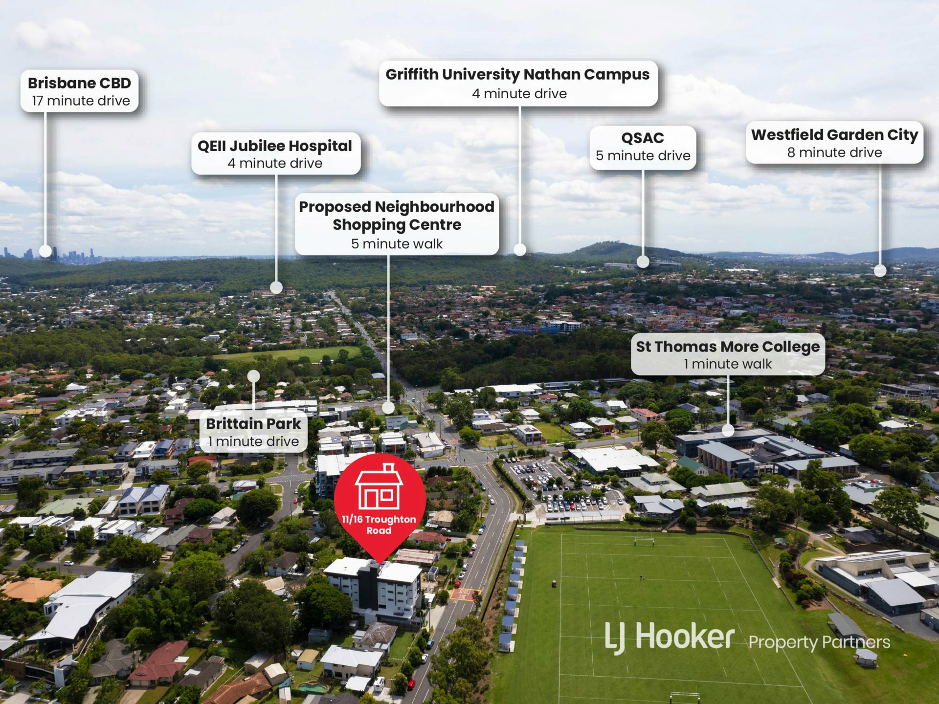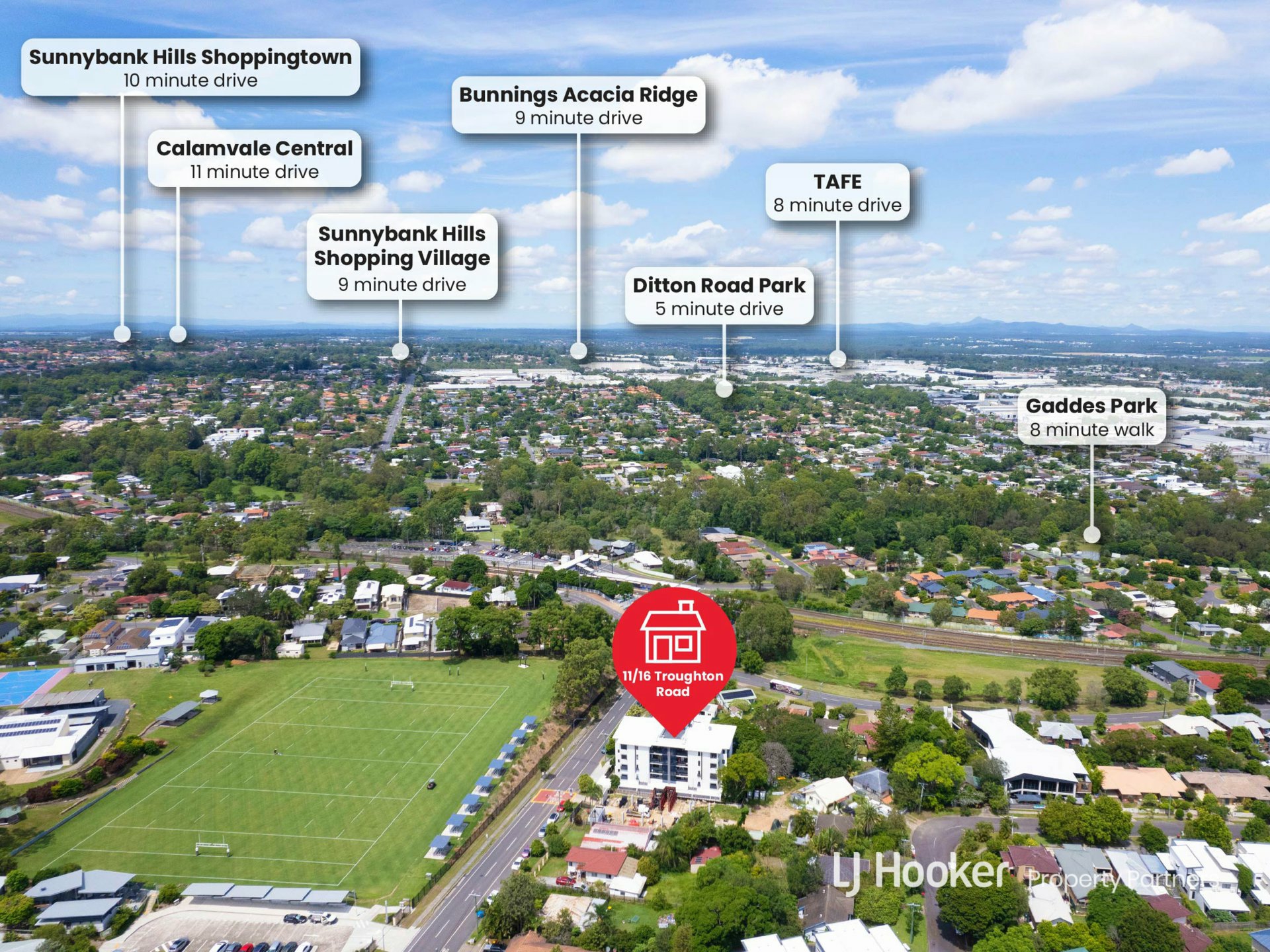 From this suburban sanctuary every amenity is close at hand: walk to Banoon train station (5 minutes), Sunnybank State School (9); drive to Sunnybank State High (3 minutes), Sunnybank Plaza or Market Square (4), Griffith Uni Nathan Campus (4), QEII Hospital (6), Westfield Mt Gravatt (7), and the Pacific Motorway onramp (9).