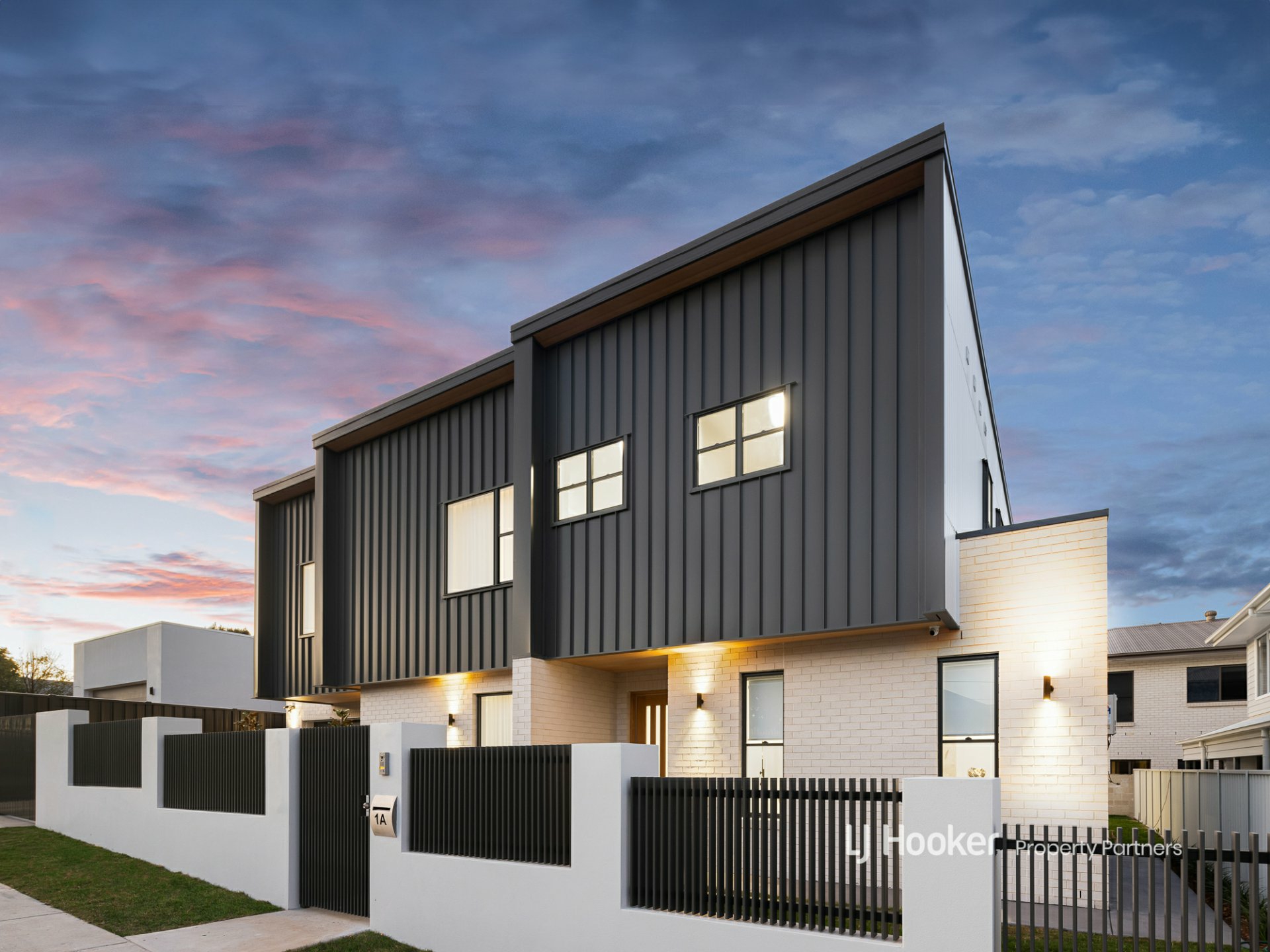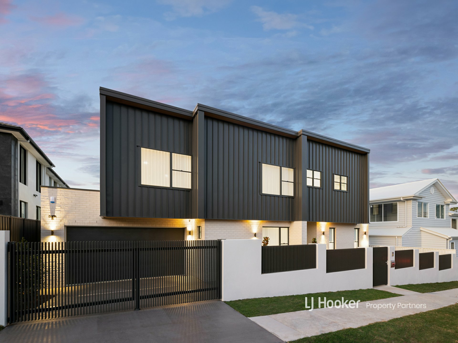 - Bold, modular-style two-storey with a sophisticated two-toned elemental facade
