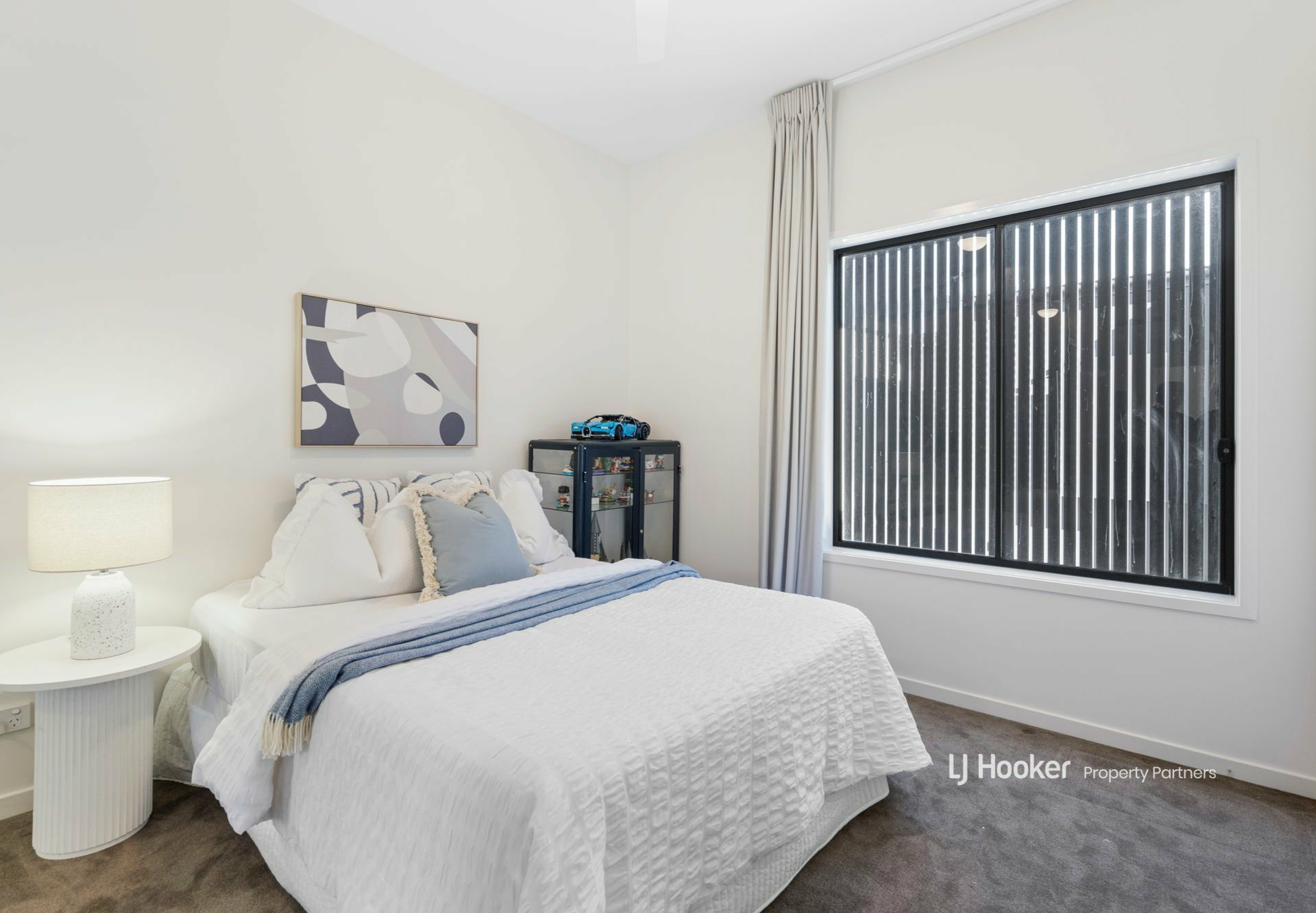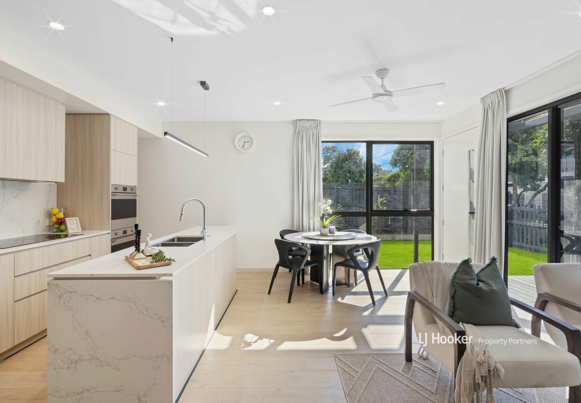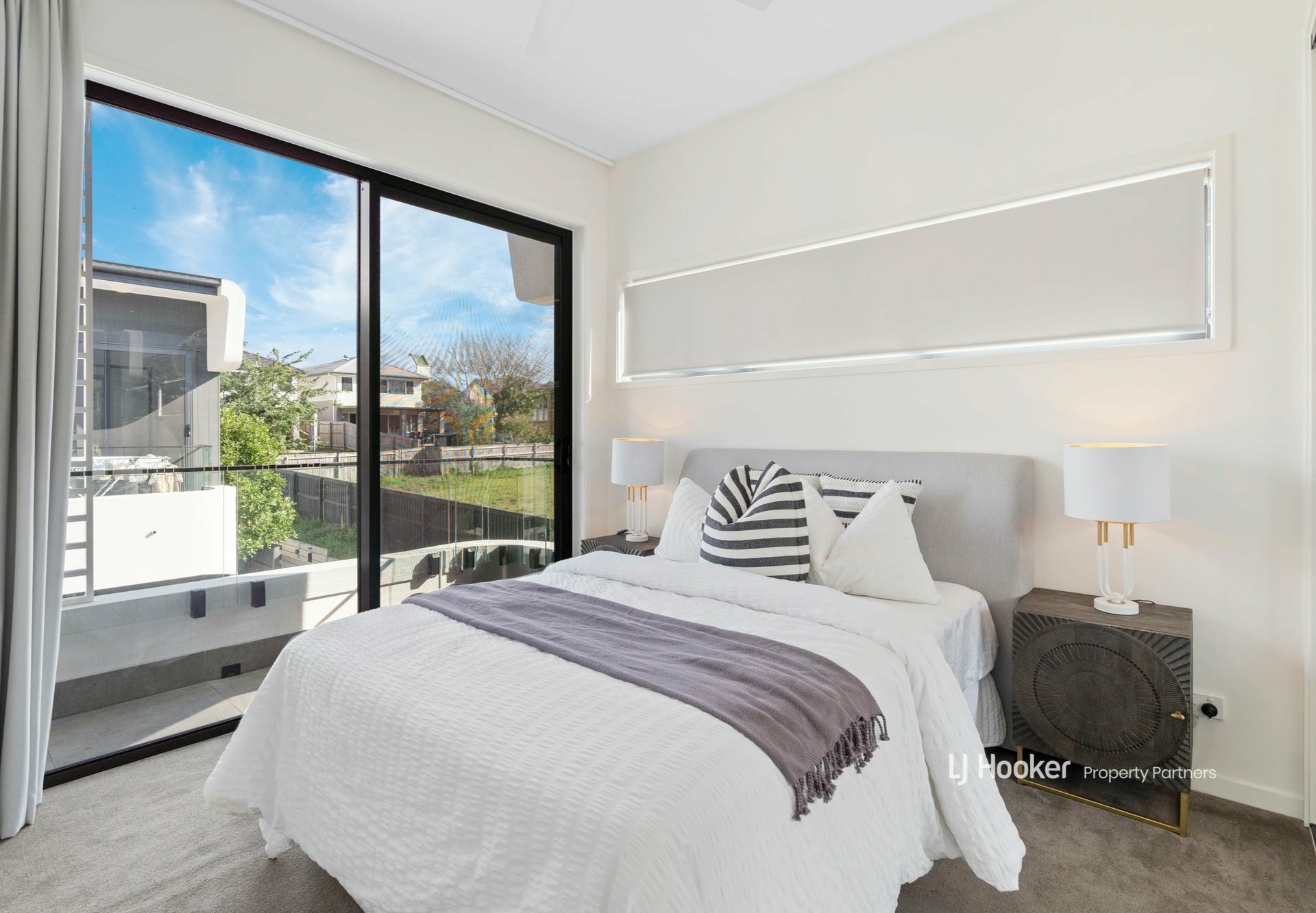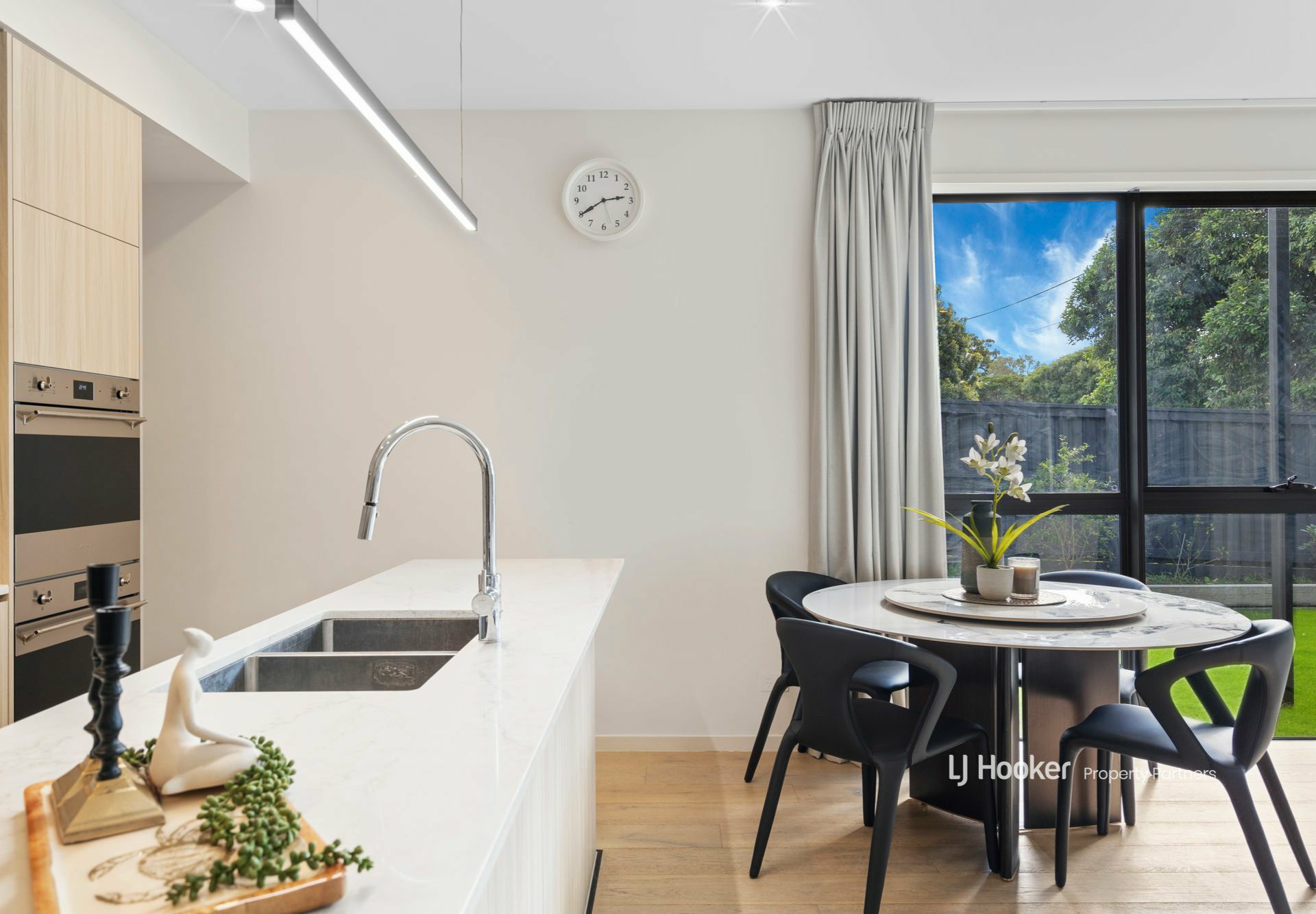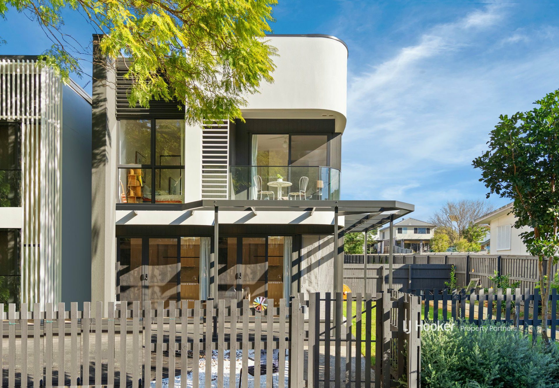 Dual access into this modern marvel is via Station Road by car, down a shared driveway to a lock-up double garage with an open-air guest park next door, and from Young Street for the walk-ins - through a secure front gate, past a stone courtyard and grassy side yard onto the north-facing arboured timber entry deck.