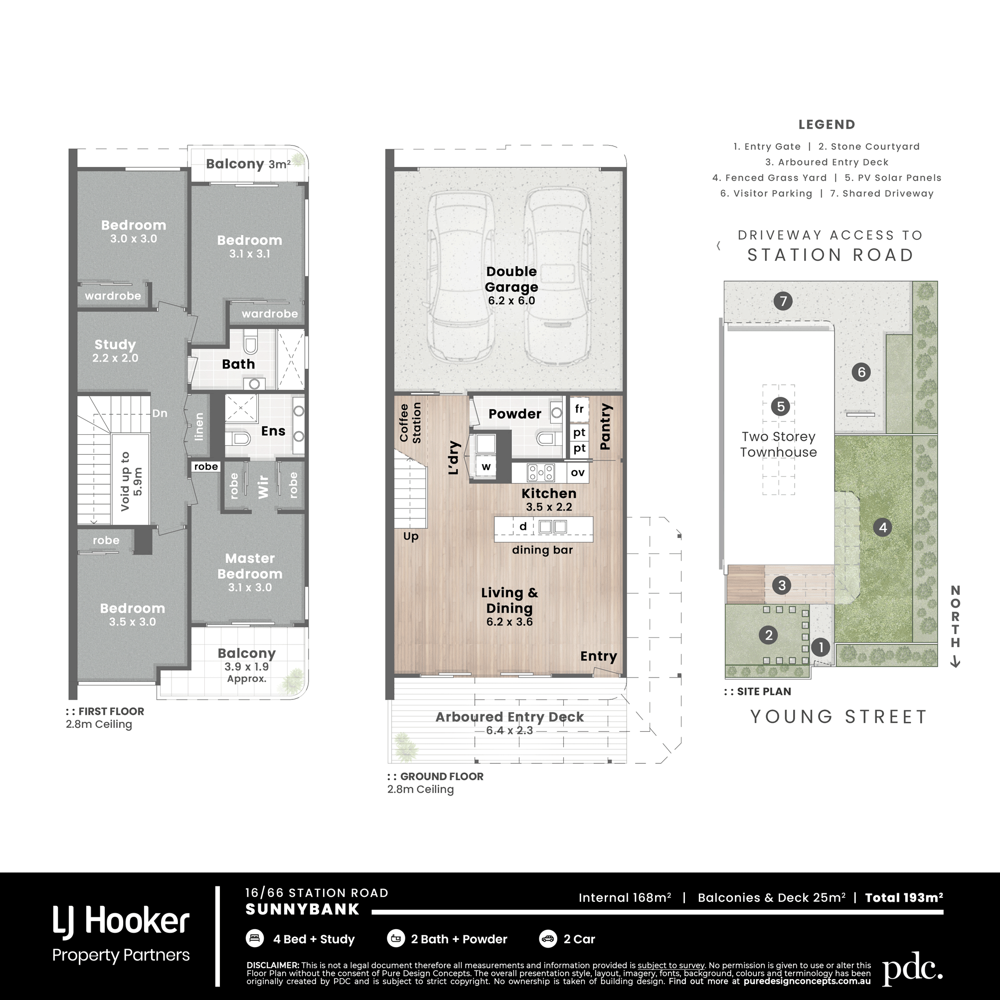 Upstairs, the ceilings soar as high as below to 2.8m, but the durable flooring below is exchanged for soft carpet running from the open study at the top of the landing through 4 generous, fan-cooled bedrooms with ducted heating. Three of these have built-in robes, with one also boasting a private rear balcony, while the luxurious master has a walk-through robe into an ensuite and sliders onto its own glass framed balcony - almost 4m deep and overlooking the lovely front and side gardens.