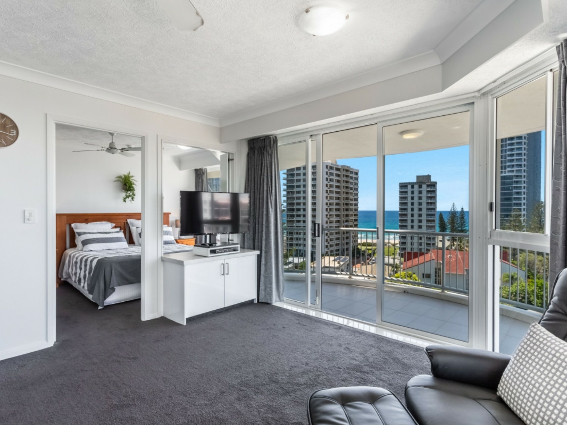 Situated above the hustle and bustle of life is this fully renovated, level 8, superior ocean view spa apartment. located on level 8 is just 2 block from the pristine coastal beaches of the Gold Coast.
