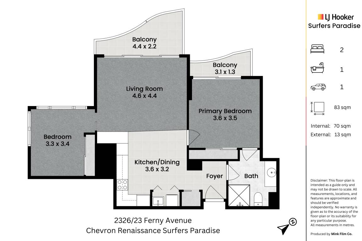 Disclaimer: LJ Hooker Surfers Paradise and its agents make no representation or warranty as to the accuracy, completeness or reliability of the information contained herein. All information provided is gathered from sources we consider reliable; however, we cannot guarantee its accuracy and interested parties should rely on their own enquiries. Dimensions, areas and figures are approximate and subject to change without notice.