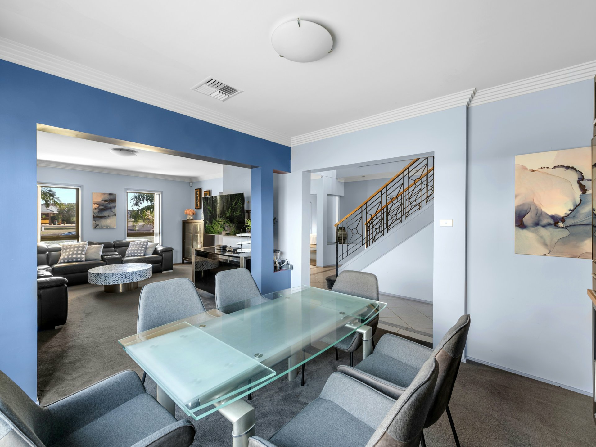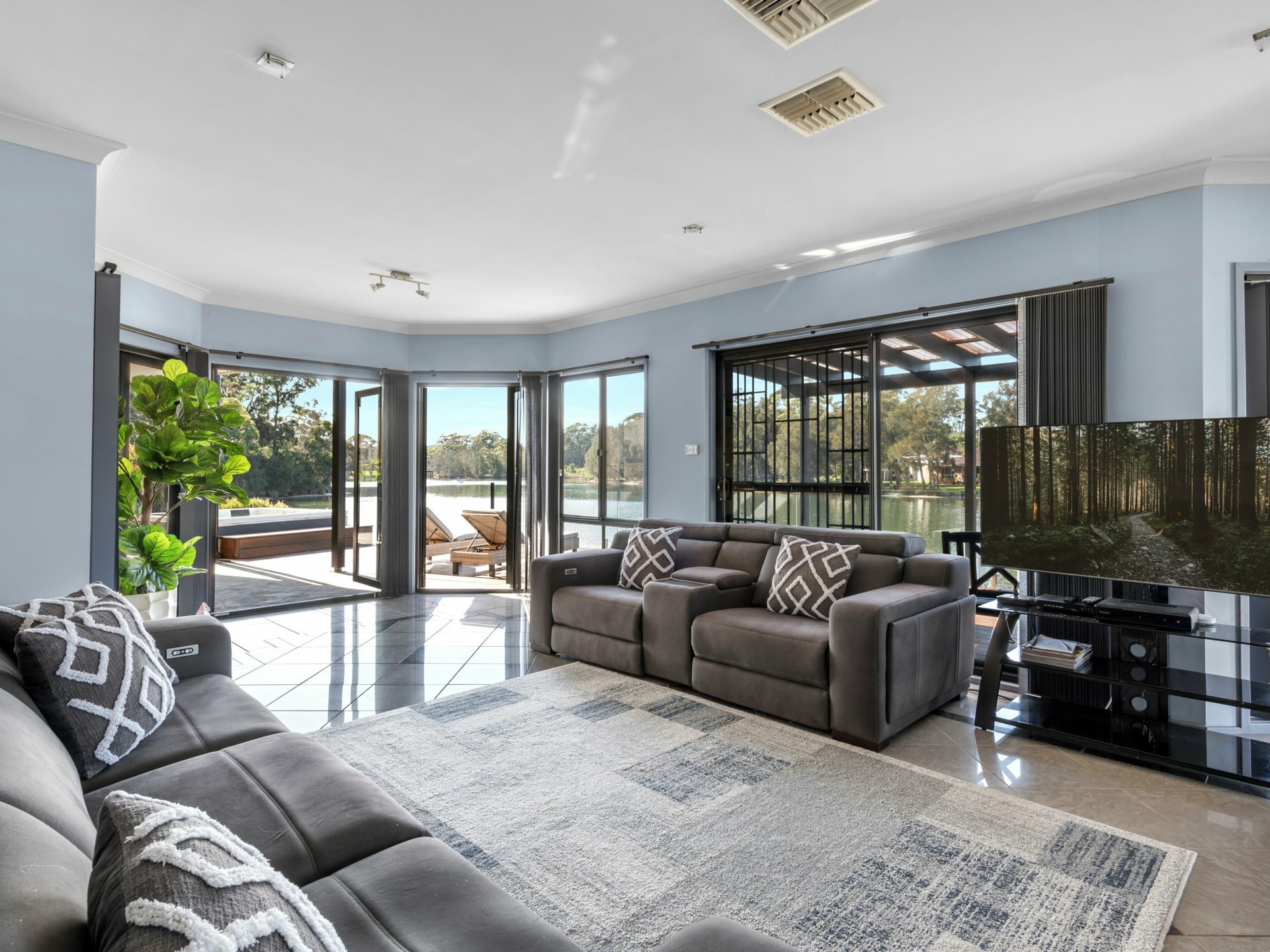 Multiple living zones are thoughtfully spread across two spacious levels, including formal and informal living areas, a dedicated family room upstairs and expansive open plan living and dining spaces that seamlessly connect to the waterfront entertaining zones.