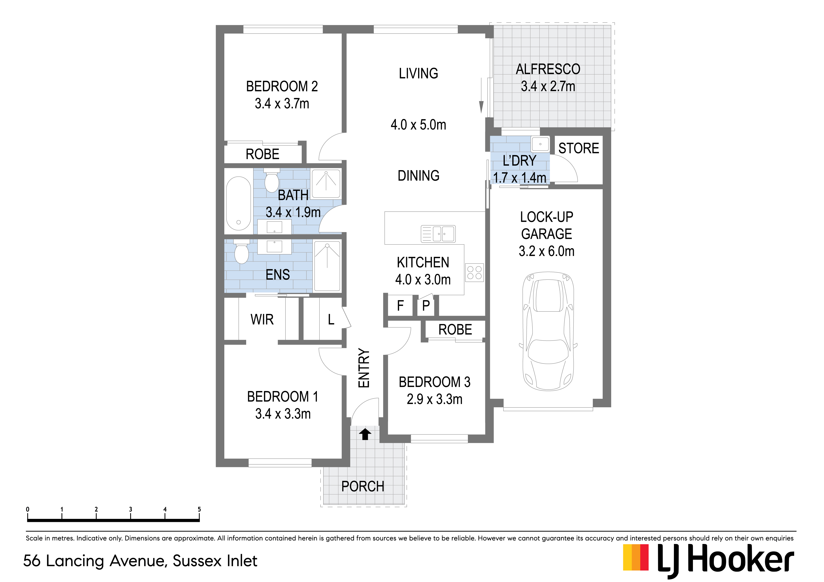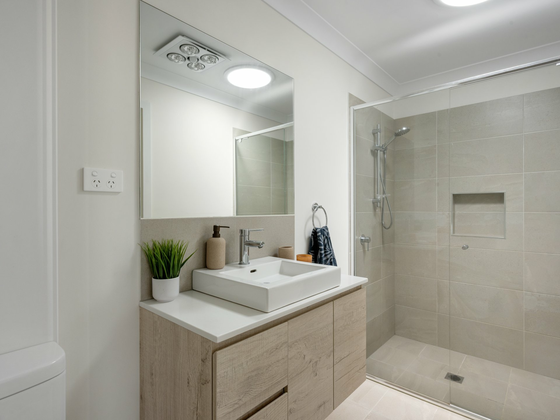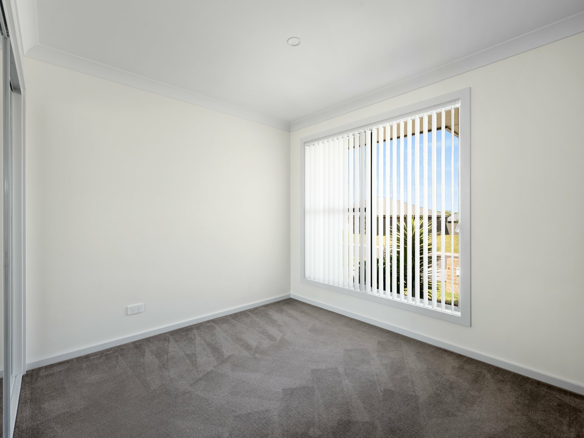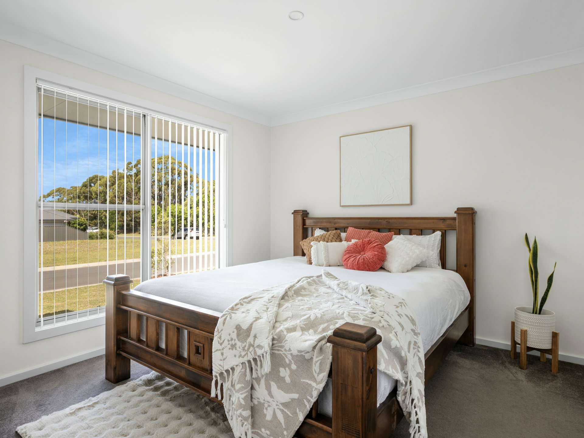 The home features three bedrooms, including a generous main bedroom complete with walk-in robe and private ensuite. The open-plan living and dining area is complemented by a full-size kitchen with breakfast bar and dishwasher.
