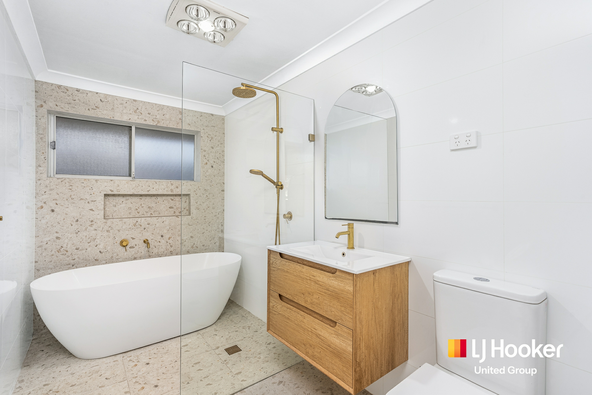 The main bedroom is complete with built-in robes, a walk-in robe, reverse cycle air conditioning, and a well-appointed ensuite with a double vanity. Two additional bedrooms are well-sized, including one with a built-in robe, and are serviced by a beautifully renovated main bathroom showcasing a relaxing bathtub.