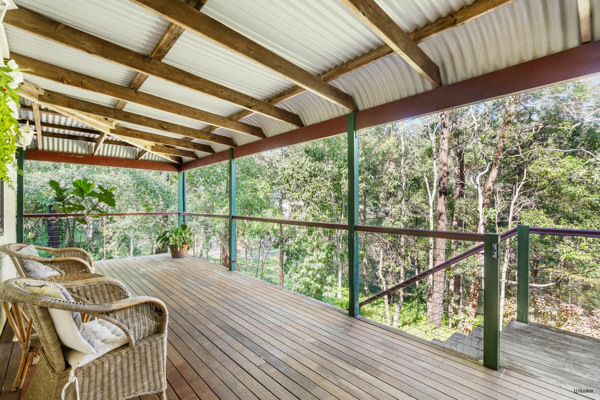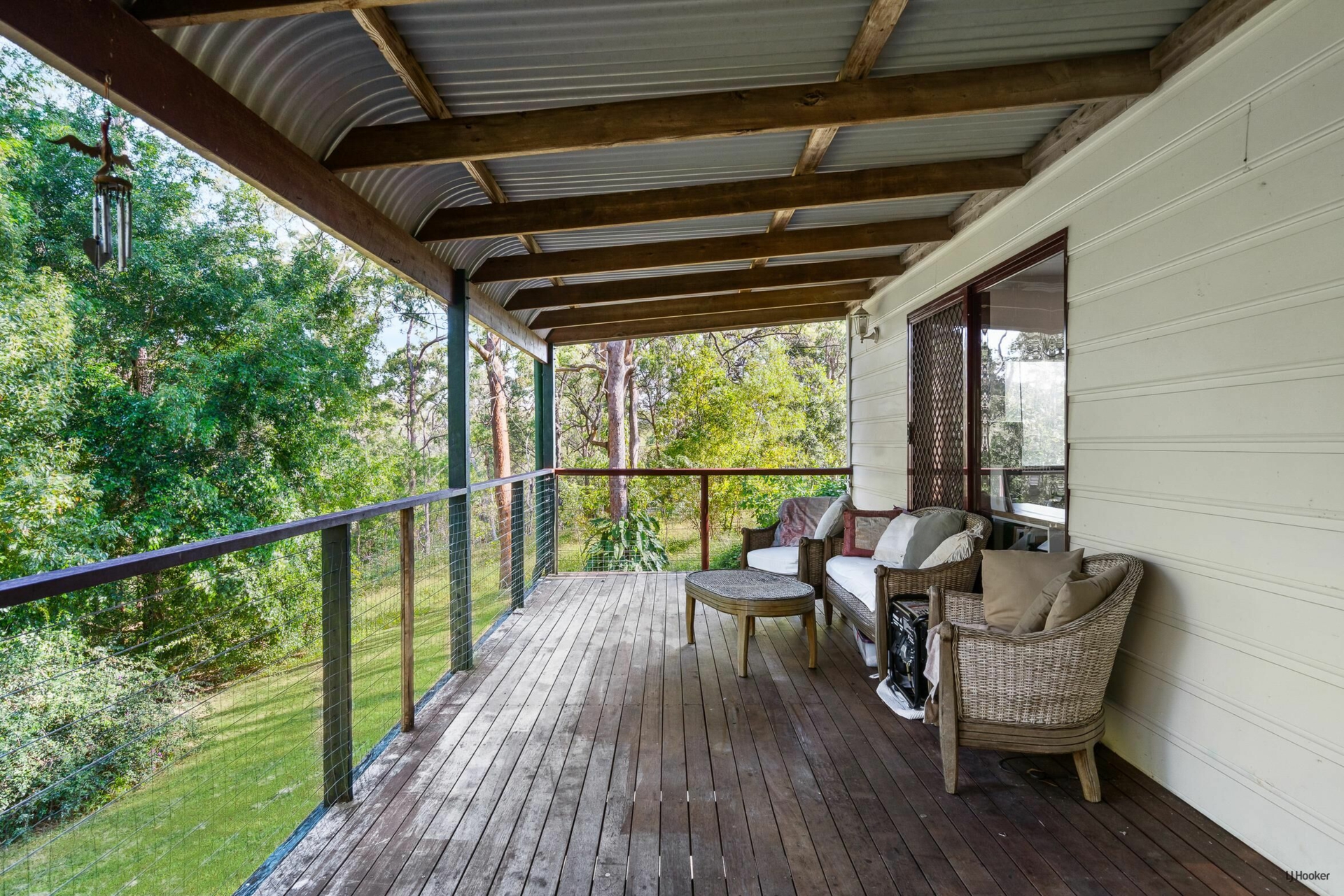 Large covered timber decks overlooking bushland