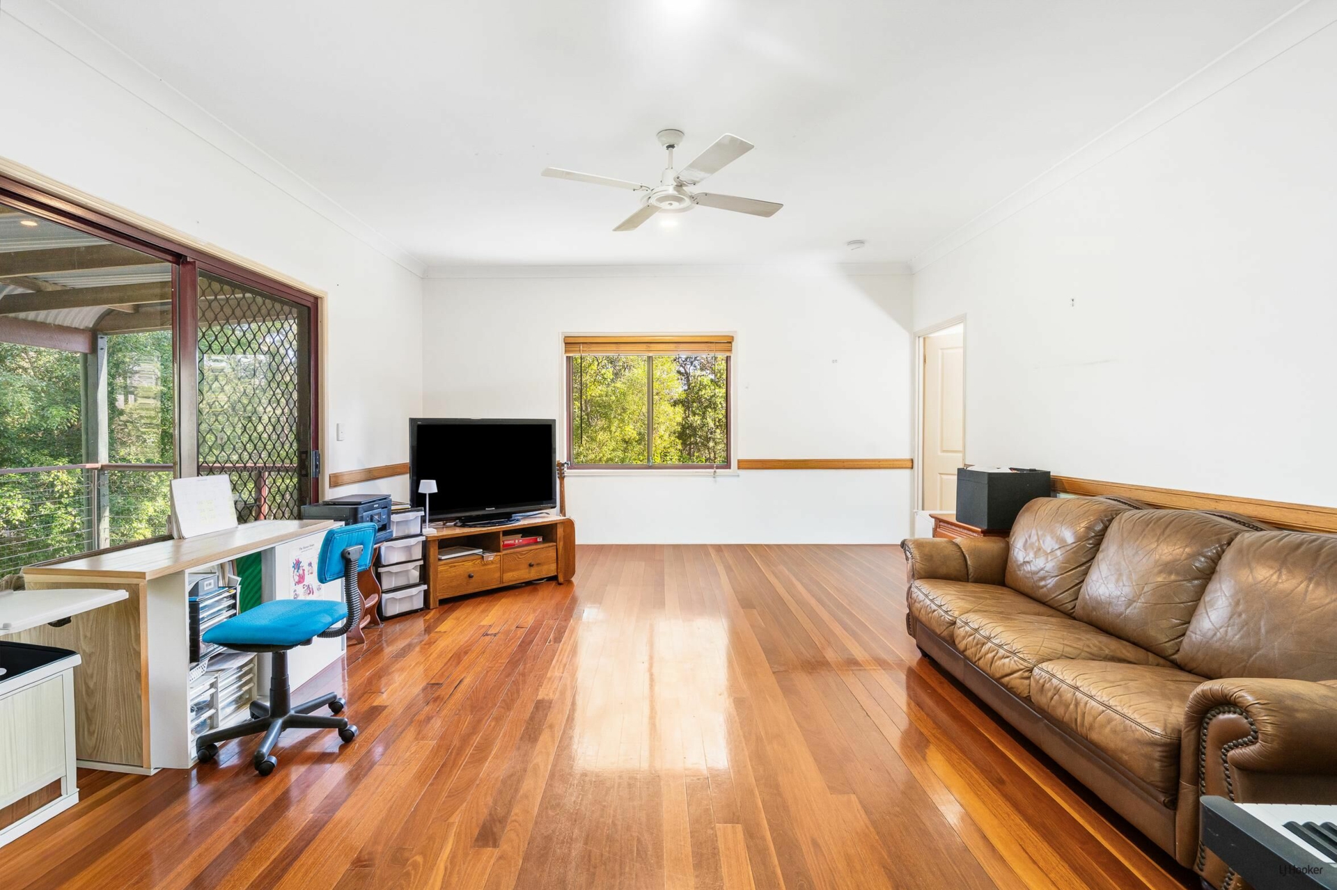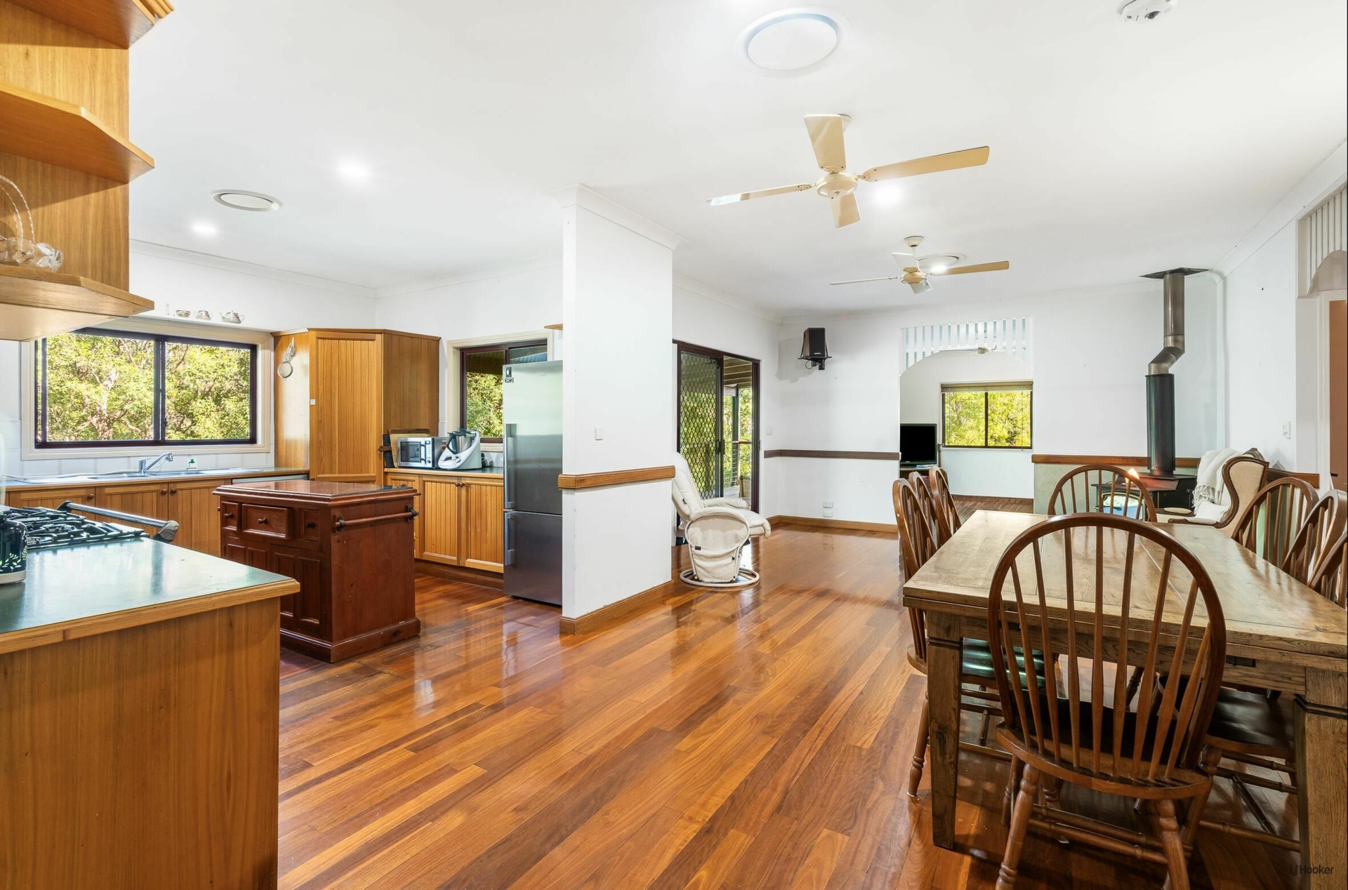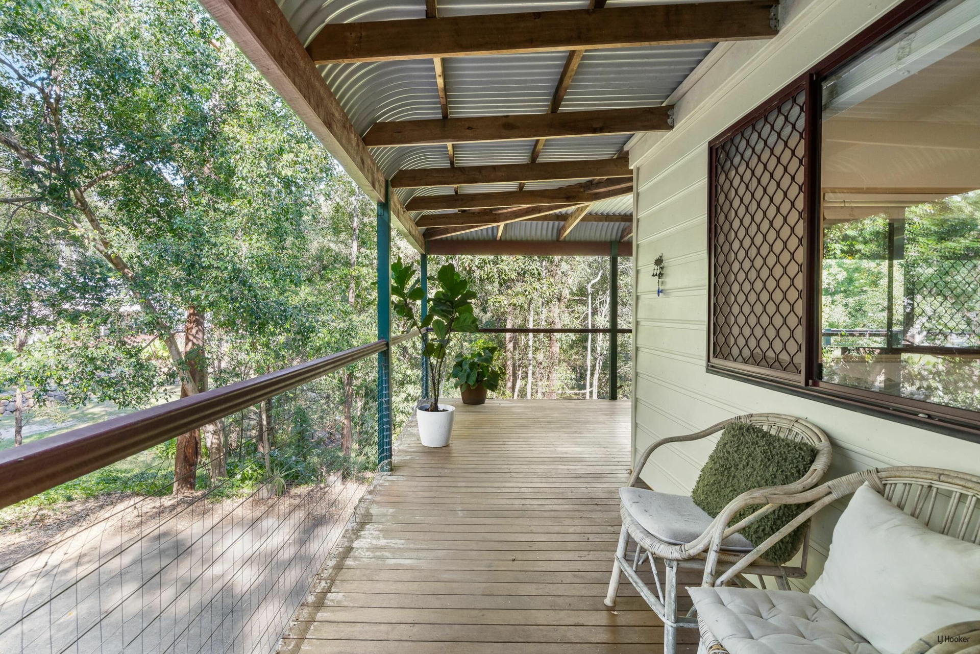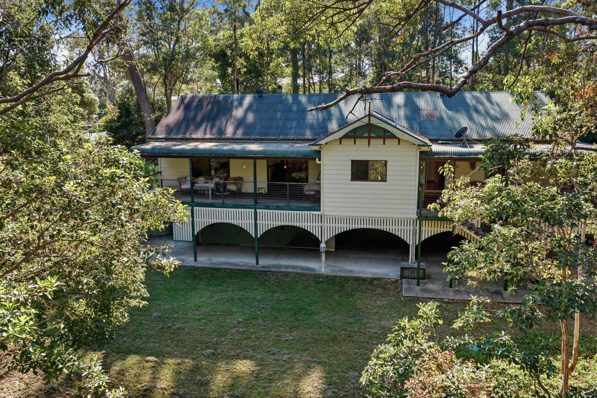 The high-set Queenslander-style home is full of warmth and character, featuring beautiful timber floors, high ceilings and multiple living areas designed for both relaxed family living and entertaining. A separate dining area complements the flexible layout, while large covered timber decks invite you to unwind and take in the tranquil bushland surrounds.
