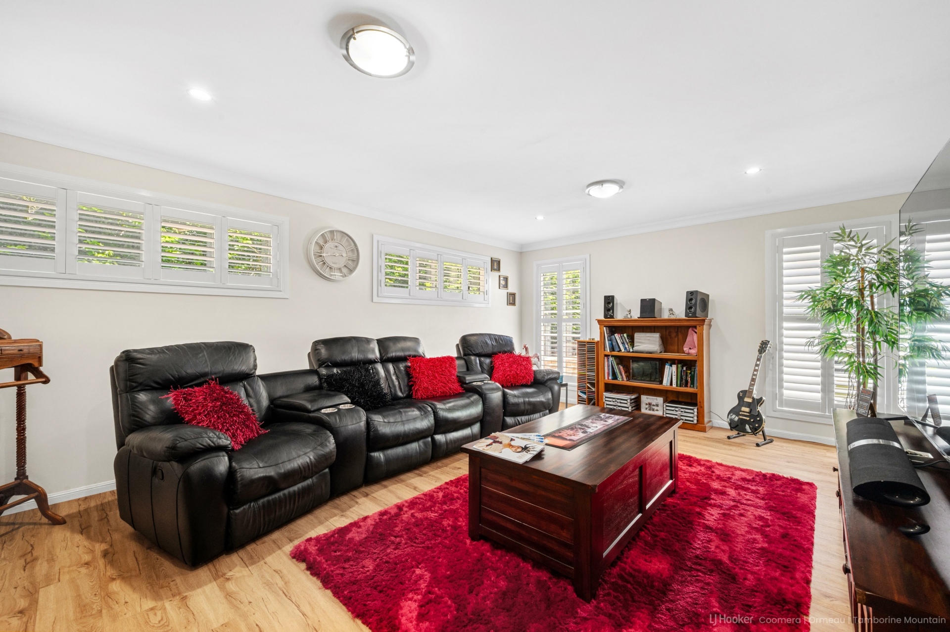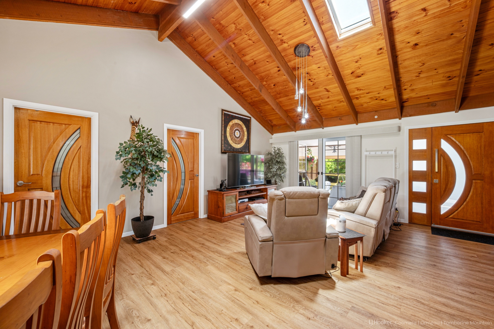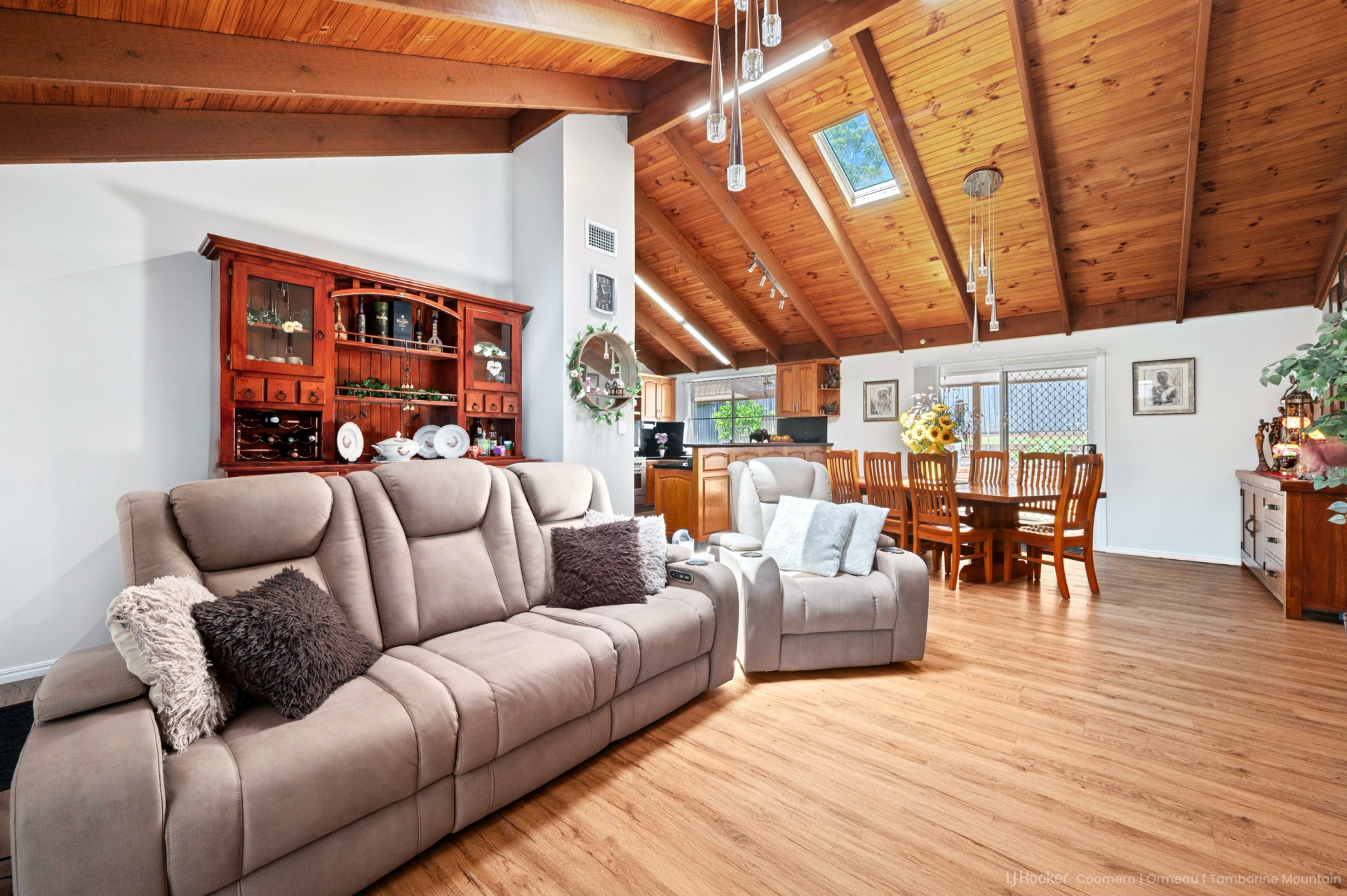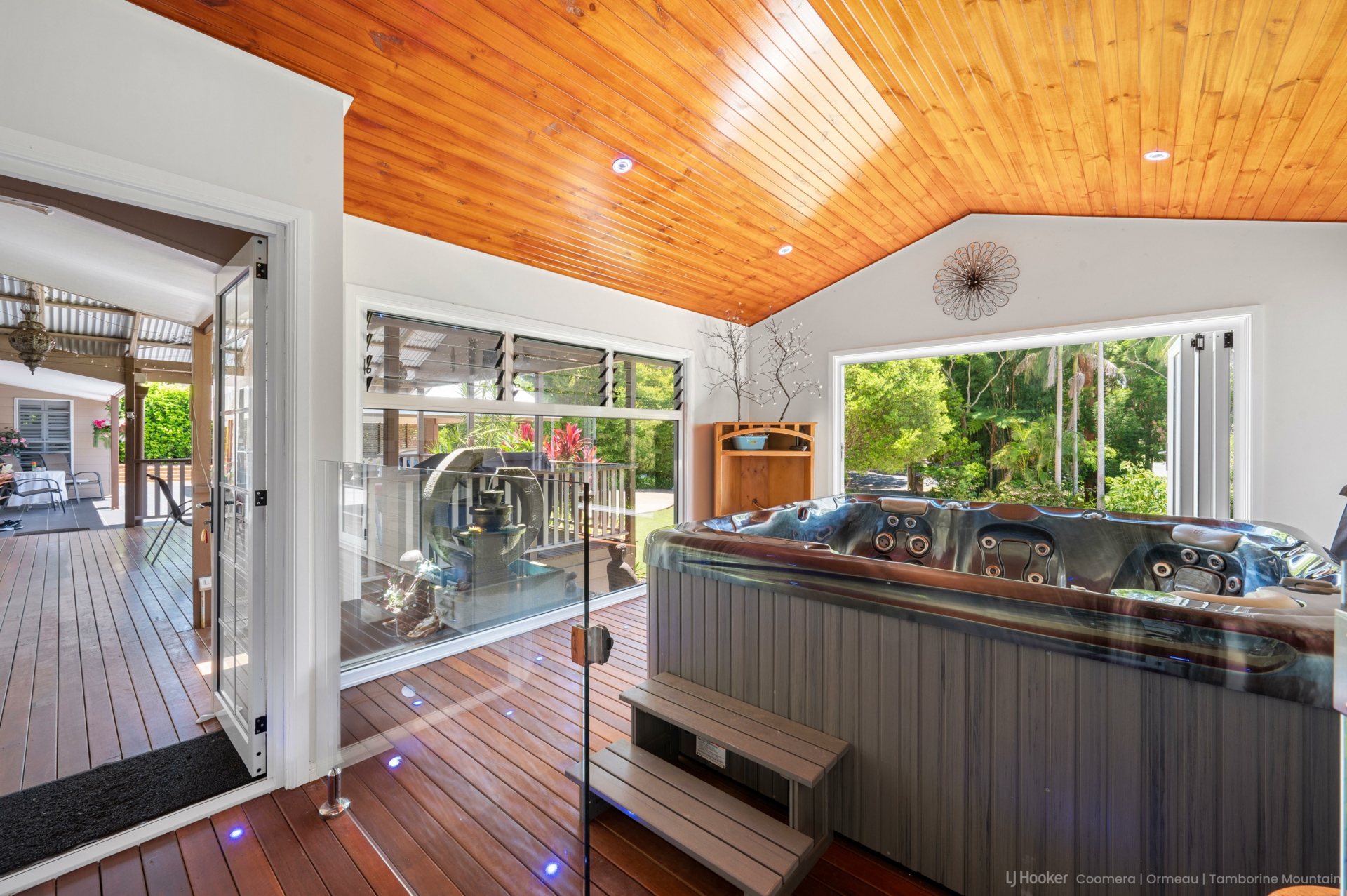 Designed for both relaxation and entertainment, the home boasts a soundproof media room for a full cinema experience, a purpose-built spa room housing a seven-person L.A. Spa for year-round enjoyment, and a vast undercover entertaining deck ideal for gatherings in any season.