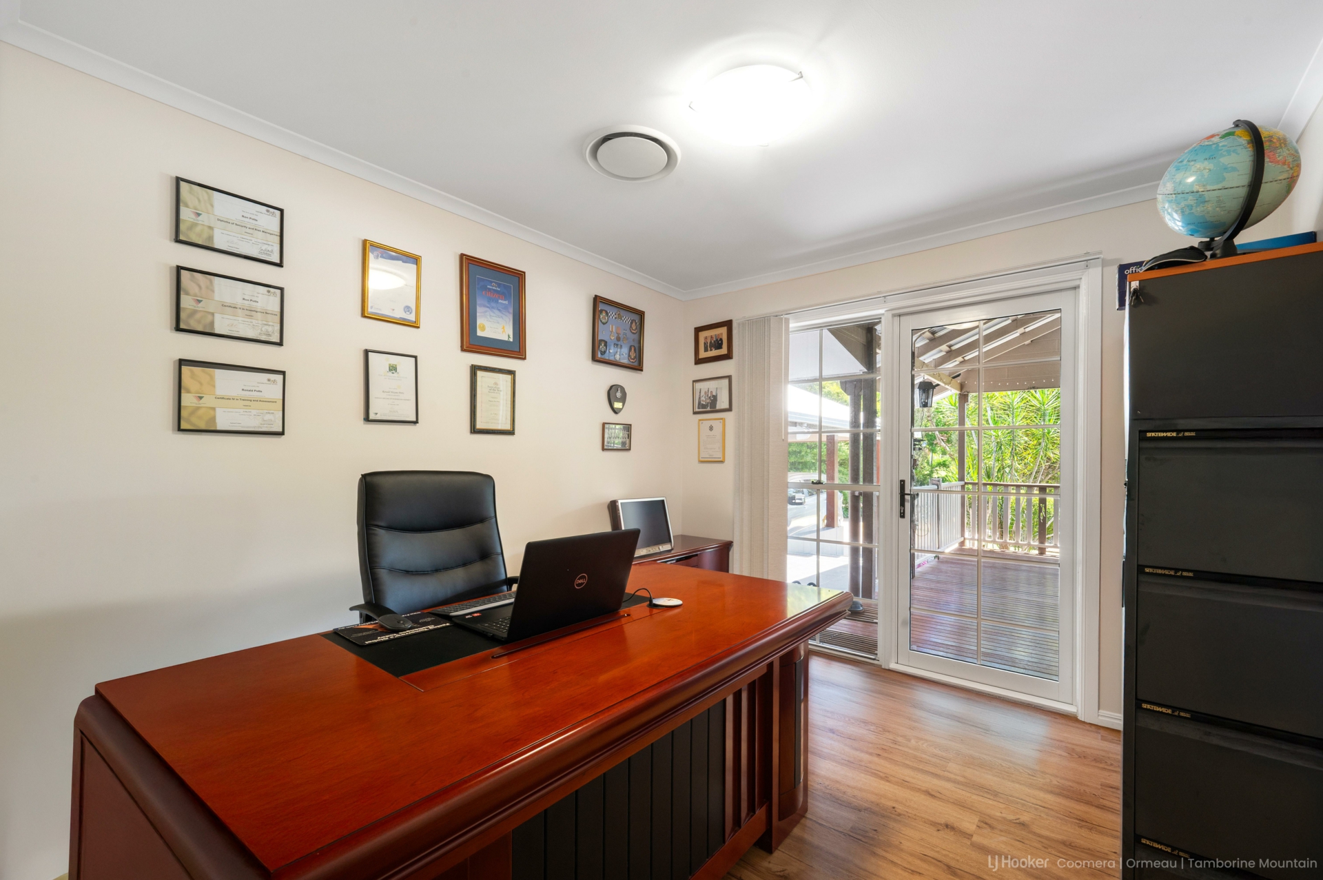 Inside, the home offers four generous bedrooms, three with elegant French doors opening onto the front deck. The master suite is a true retreat, complete with his and hers wardrobes and a spacious ensuite. A separate home office with its own entry from the deck provides the perfect work-from-home solution.