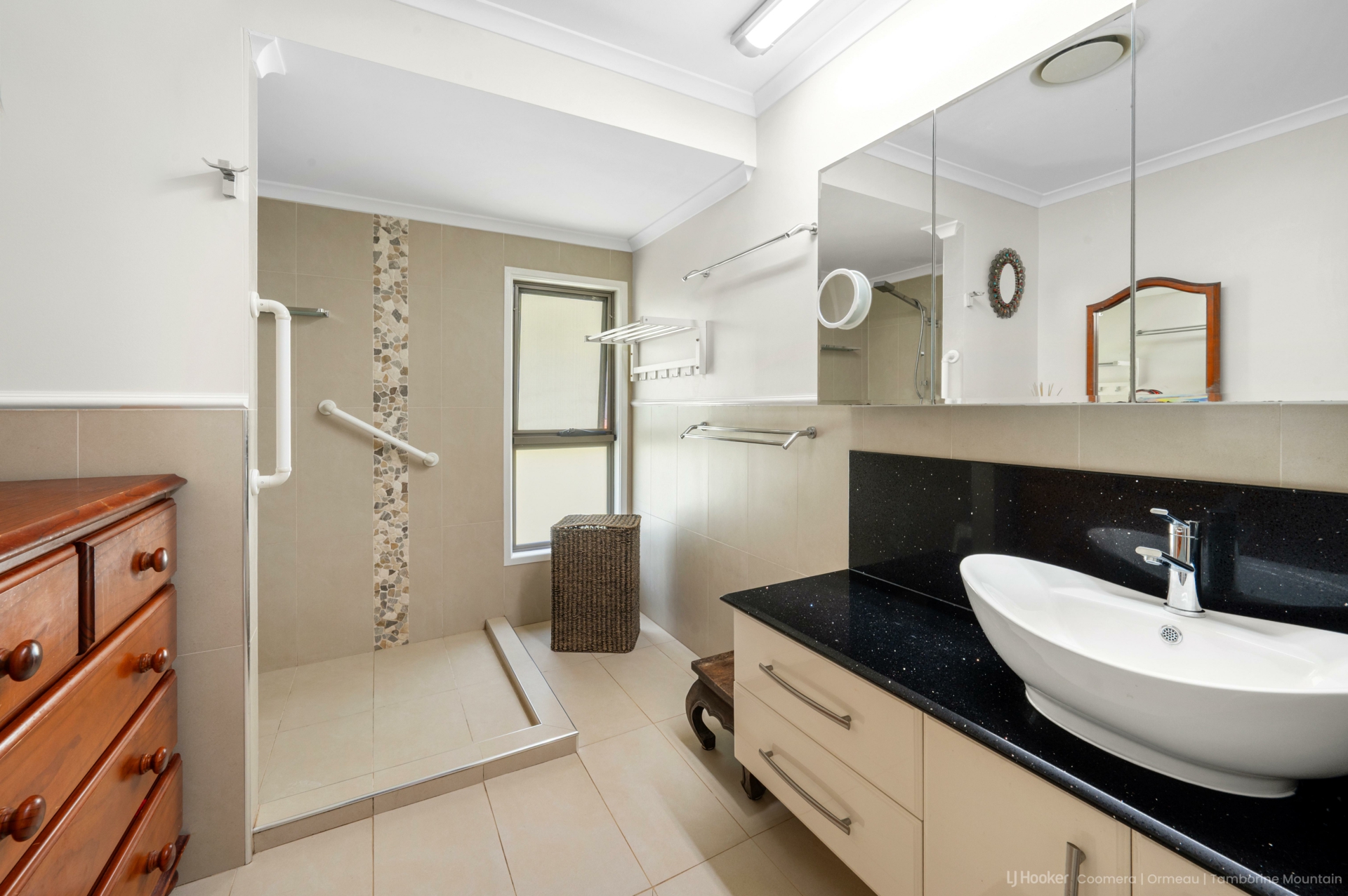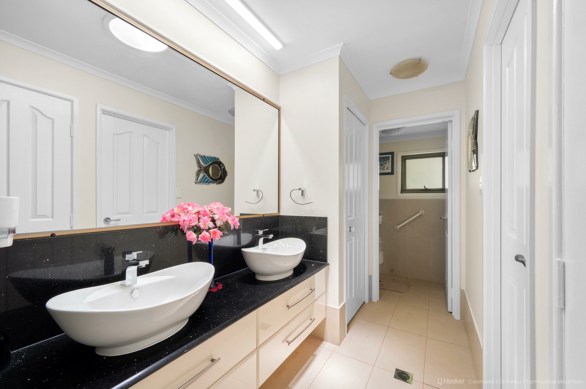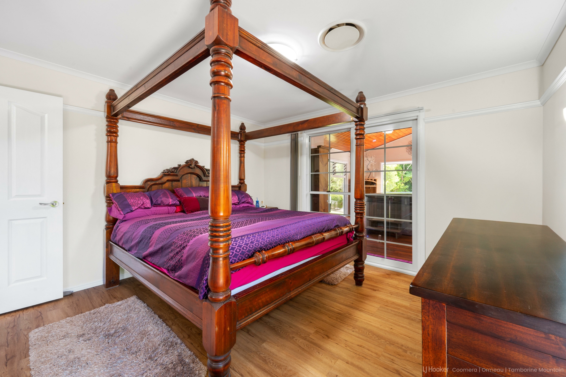 The heart of the home features combined living and dining spaces, complemented by a striking New Guinea rosewood kitchen with granite benchtops. A separate utility kitchen and extensive storage make entertaining and everyday living a breeze. Adding to the practicality is a huge laundry and utility room with wall-to-wall storage.