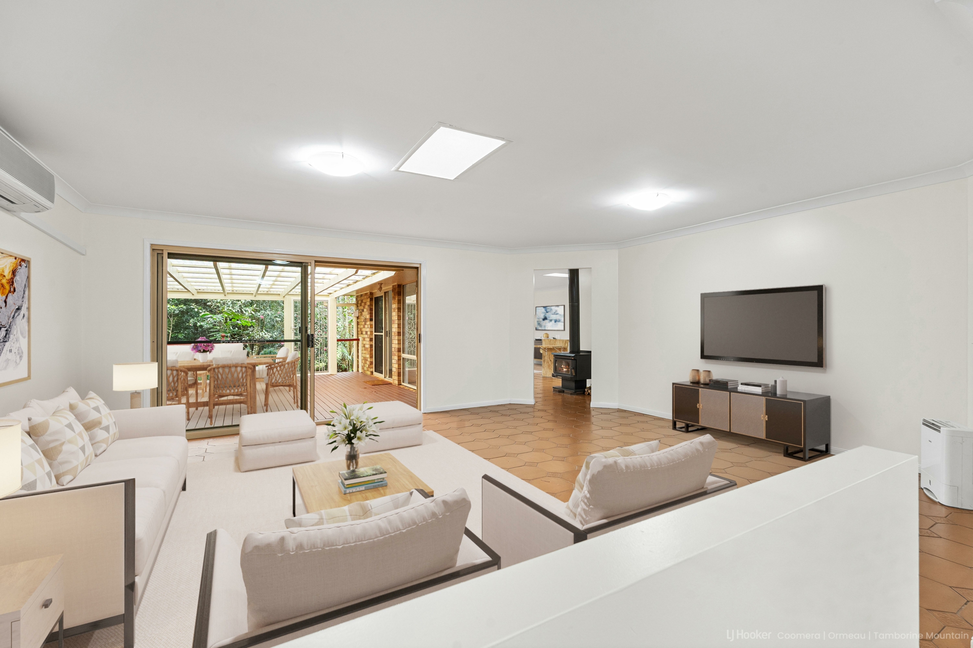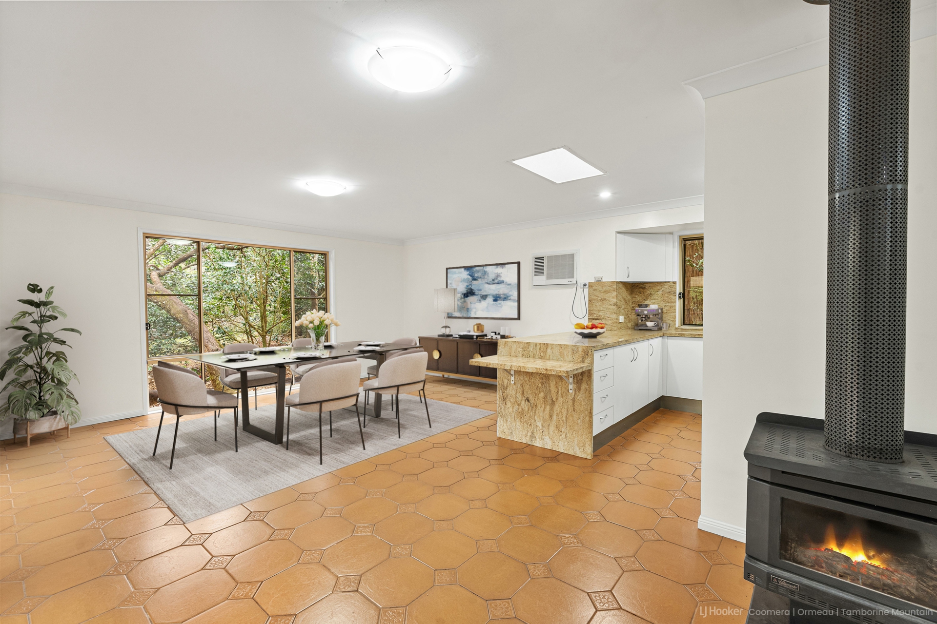The floor plan suits families, retirees or anyone wanting room to spread out, featuring two separate living areas, a centrally positioned fire place, kitchen with breakfast bar, and a private master suite with ensuite.