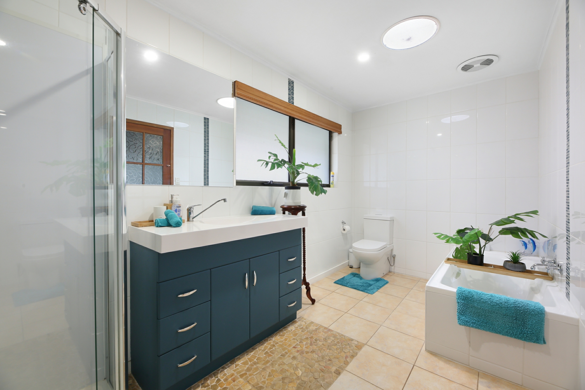 Currently configured for dual living, it can easily convert to a generous four-bedroom, two-bathroom family residence.